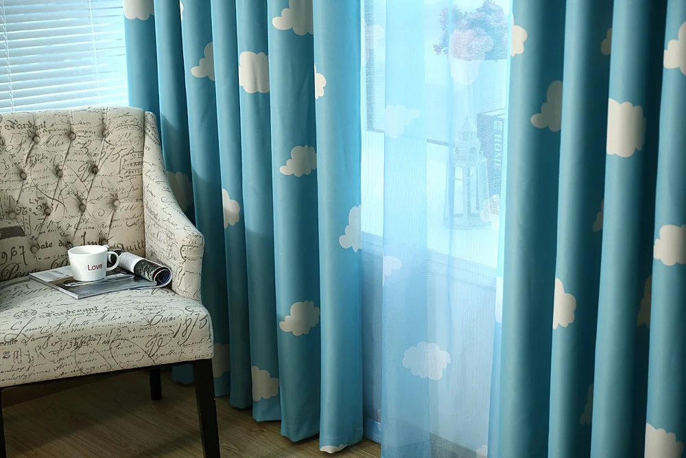 Затемняющие шторы для детской, гостиной, спальни, с принтом неба, в виде облаков, тюлевые шторы розового и синего цветов