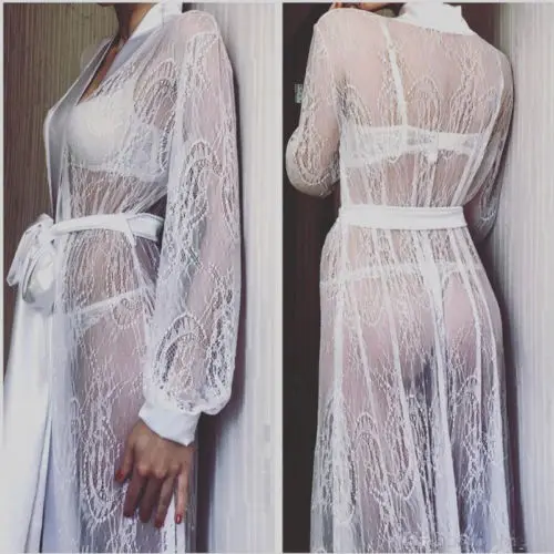 Сексуальное женское длинное шелковое кимоно, халат, банный халат, кружевное нижнее белье, ночная рубашка