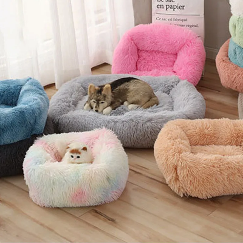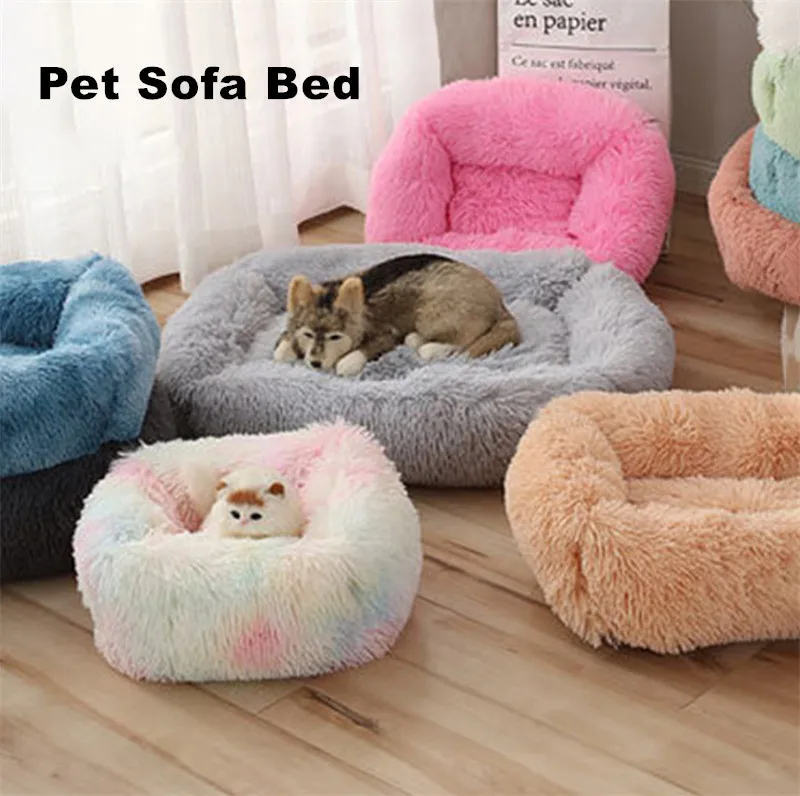Длинная плюшевая квадратная кровать для сна, кровать для кошек, супер мягкая пушистая Лежанка для щенков, для маленьких и больших собак