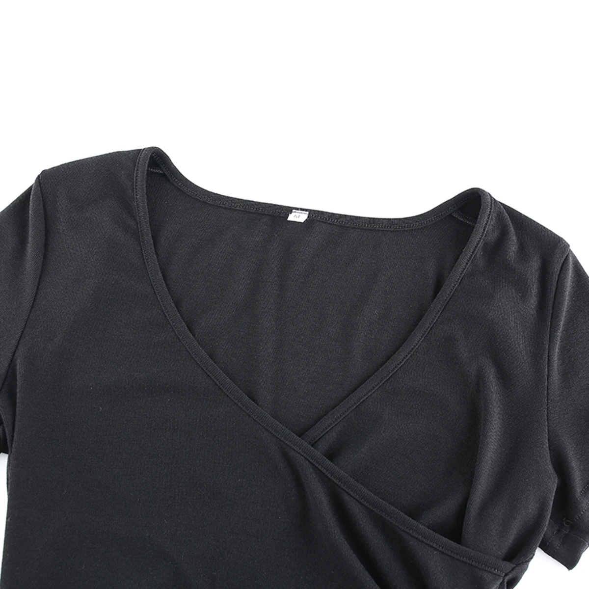 Женская футболка с коротким рукавом, летний модный сексуальный укороченный топ с V-образным вырезом и перекрестной шнуровкой, однотонный