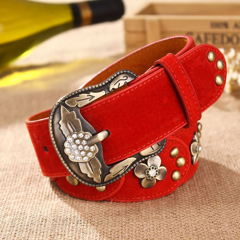 Ремень женский широкий с металлическими цветами, винтажный, CM001