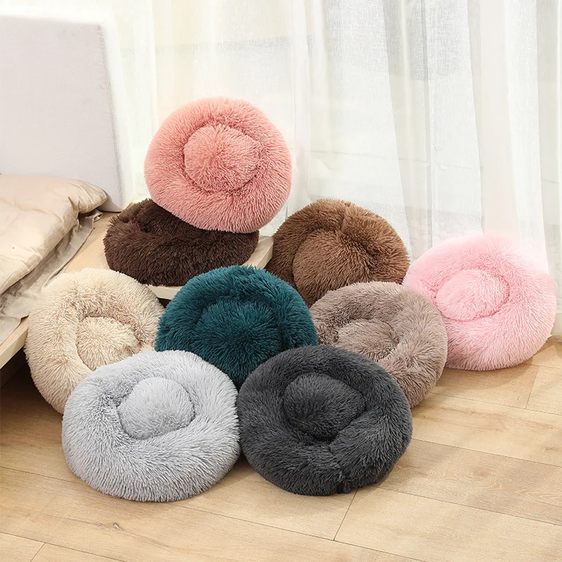 Круглые плюшевые кровати для кошек, плюшевые супер мягкие кровати для собак, зимний теплый коврик для животных, Портативные товары для домашних животных