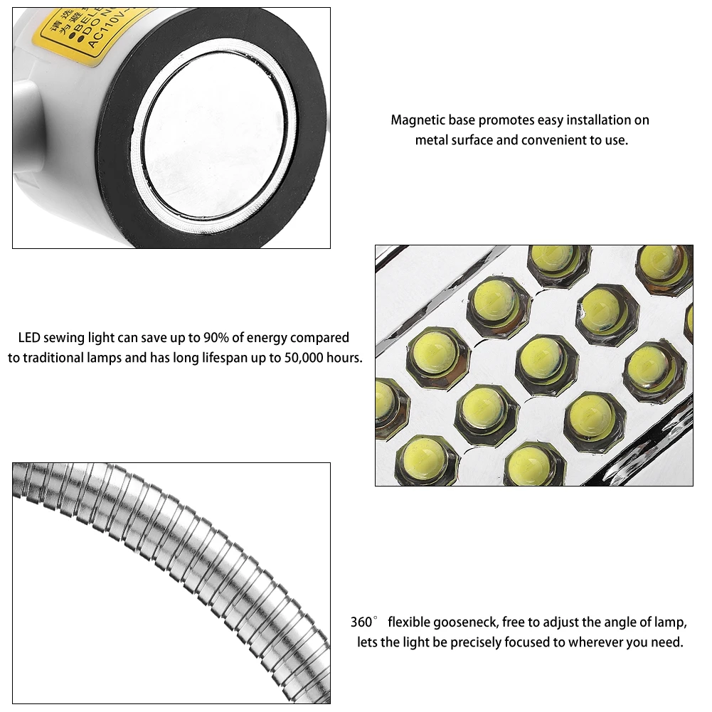 AC 110-265V 5W светодиодная подсветка для швейной машины с магнитной основой 360 градусов гибкий рабочий светильник для токарного станка с ЧПУ
