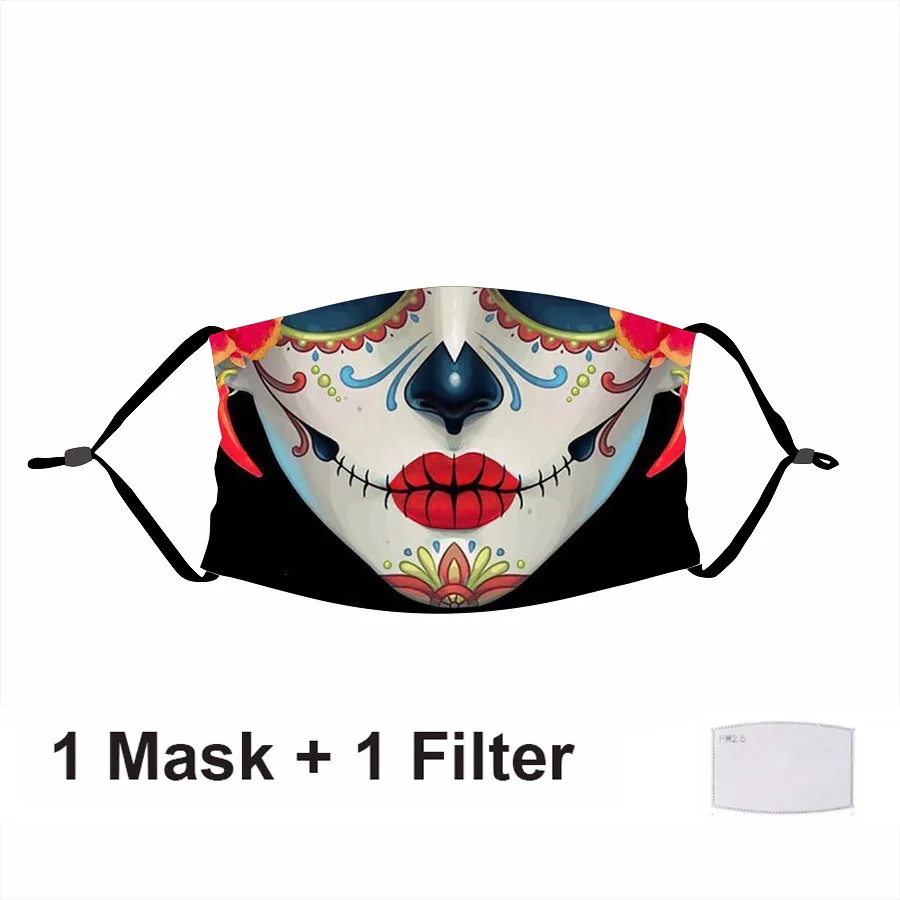 Маска дня Мертвых Череп Косплей модный принт лица маски вечеринка Хэллоуин Забавный Скелет маска для лица мексиканский фестиваль Catrinas