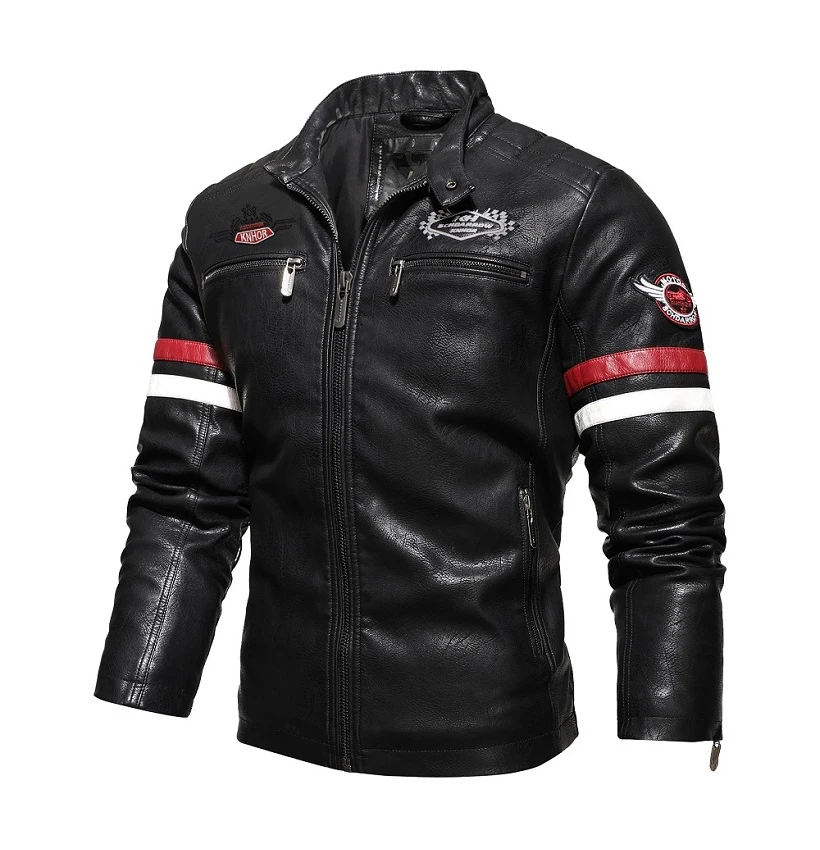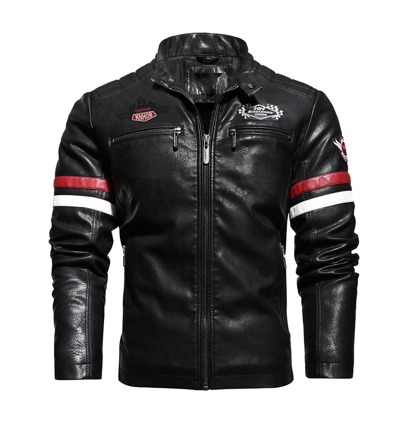 Мужская байкерская куртка из искусственной кожи, Черная байкерская куртка из искусственной кожи с вышивкой в винтажном стиле, Осень-зима 2020