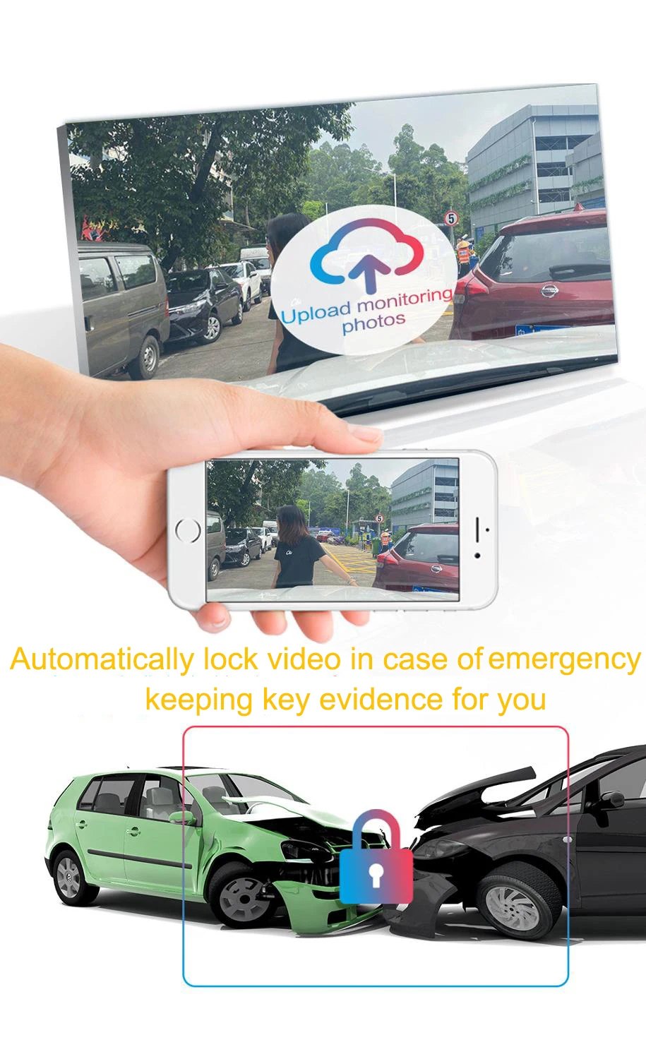 Встроенный датчик гравитации, поэтому независимо от того, находится ли он за рулем или на парковке (выключите стартер), доказательства столкновения будут автоматически сохранены. В то же время загрузите фотографии мониторинга на облачный сервер и отправьте уведомления на мобильный телефон владельца.