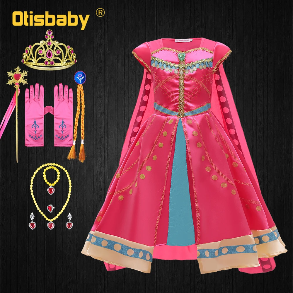 Aladdin Принцесса Маленькая девочка раньше Хэллоуин Девушки Жасмин костюм с красивой накидкой летняя красная Арабская традиционная одежда
