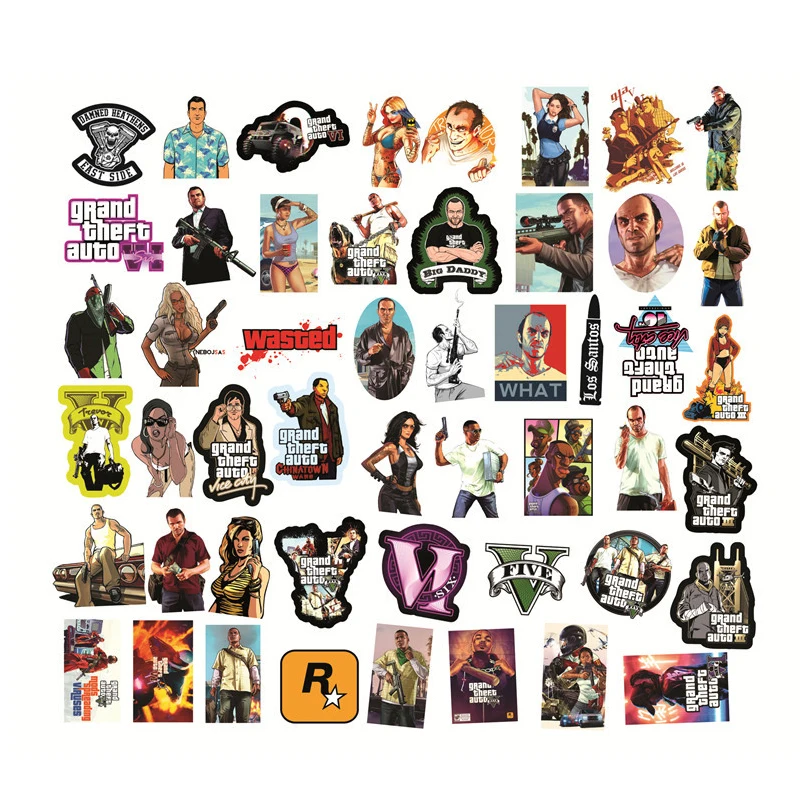 50 шт. Стикеры из игры GTA граффити Дорожный чемодан Гитара Холодил...