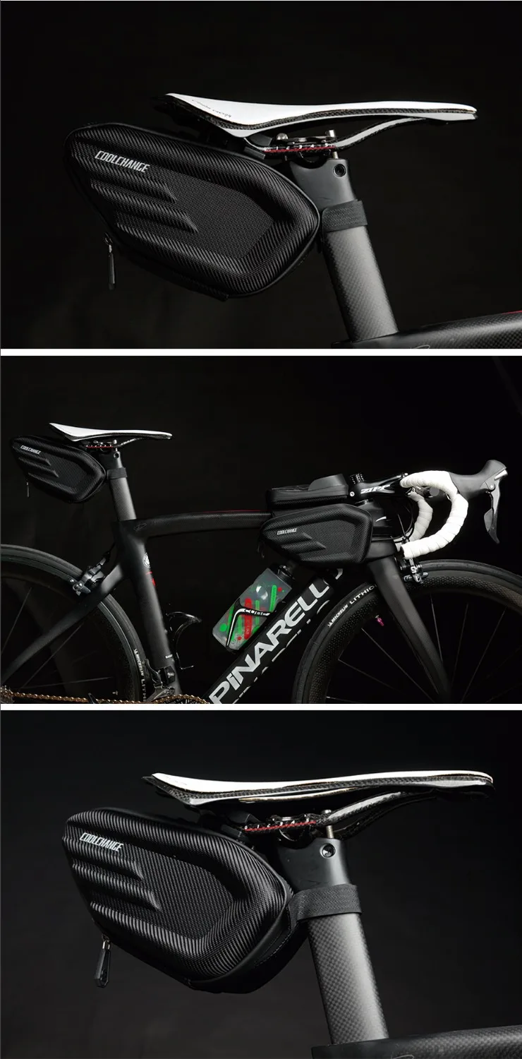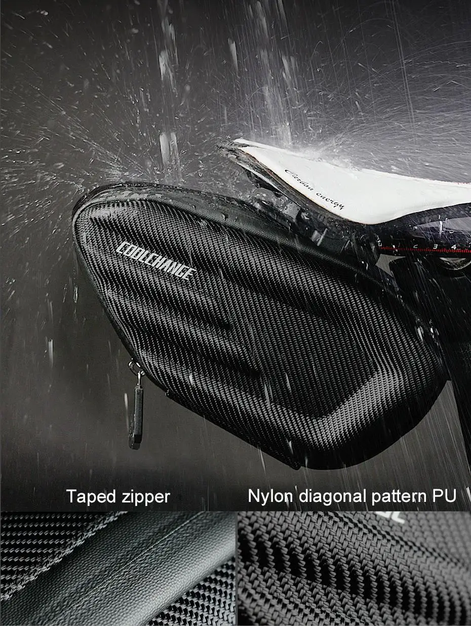 Бренд: CoolChangeНазвание: сумка для сиденья велосипедаМодель: 12025 Цвет: черныйВес: около 200 гРазмер изделия: около 22*9,5*12,5 смМатериал: искусственная кожа с диагональным узором из нейлонаКласс водонепроницаемости: только для ежедневного использования