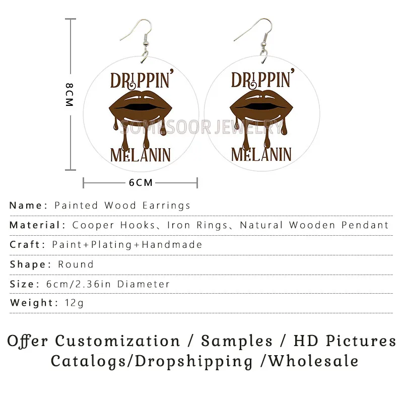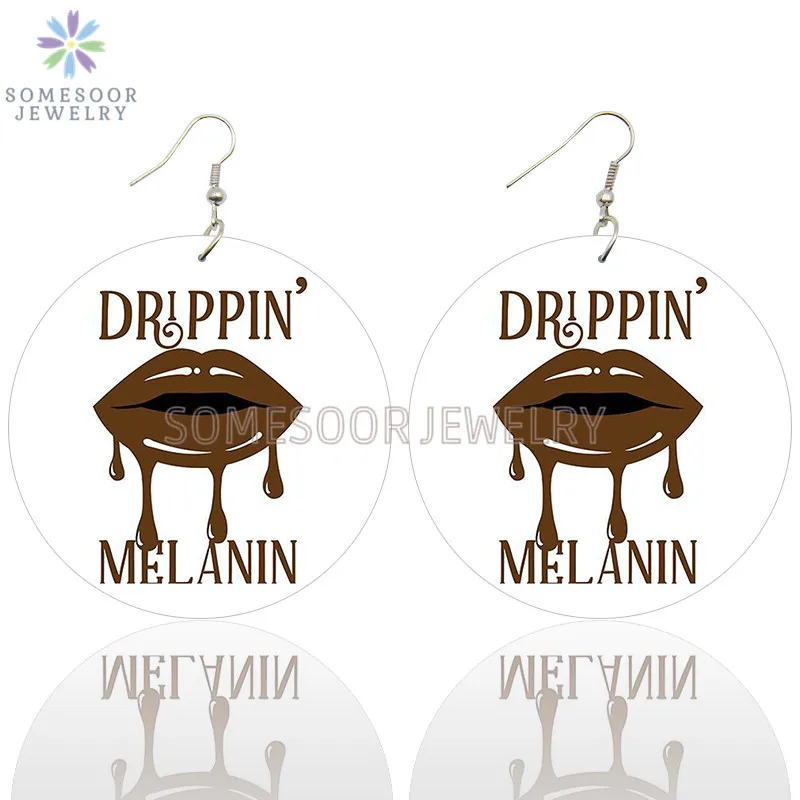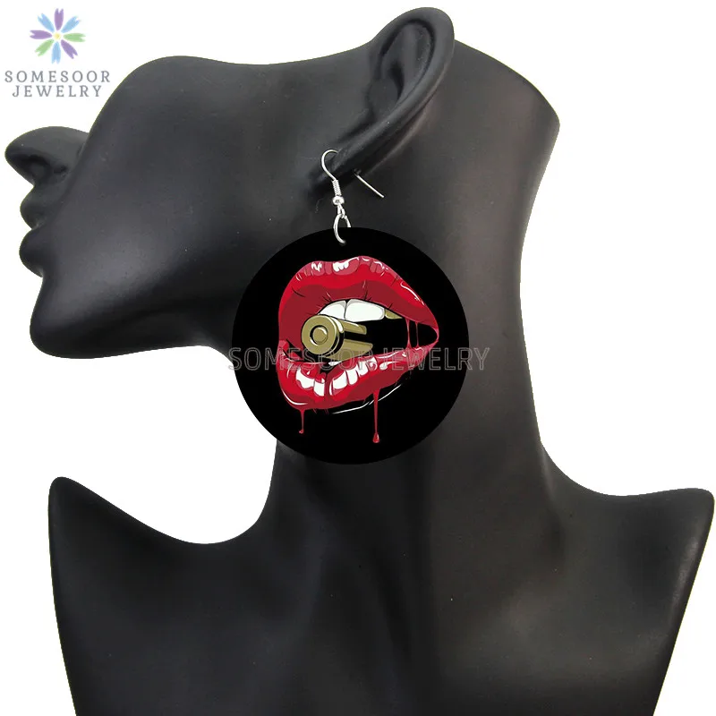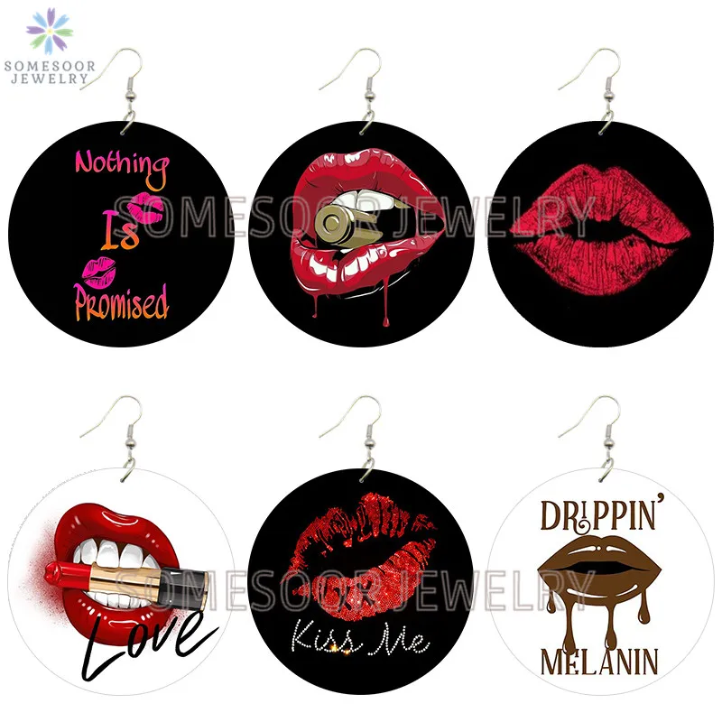 SOMESOOR Kiss Me Drippin меланин деревянные висячие серьги с принтом в виде губ винтажные Деревянные Подвески петли Висячие ювелирные изделия для женщин подарок