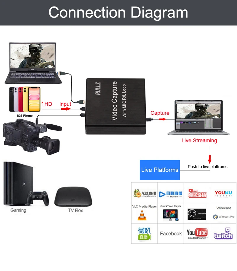 Номер моделиRullz USB 2.0 HDMI Video Capture Card with Loop