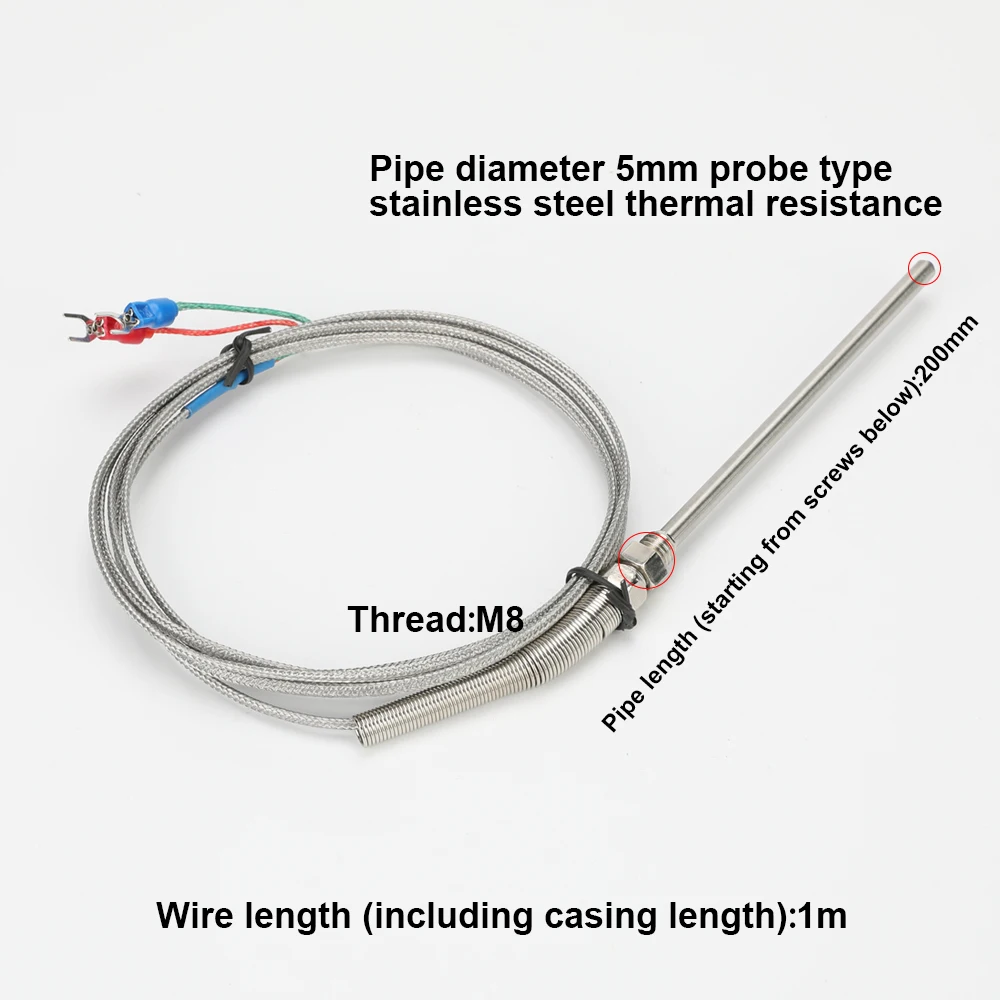 Идеальный Температурный датчик, 1 м, 2 м, термопара из нержавеющей стали типа K 0-800 , диаметр 5 мм, резьба M8 50 мм100 мм150 мм200 мм