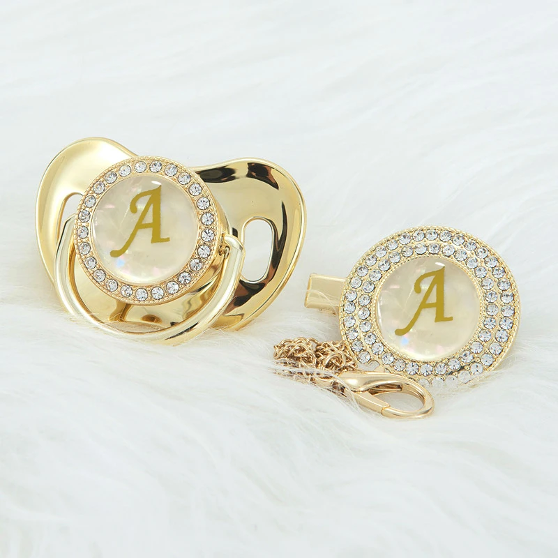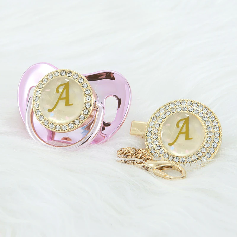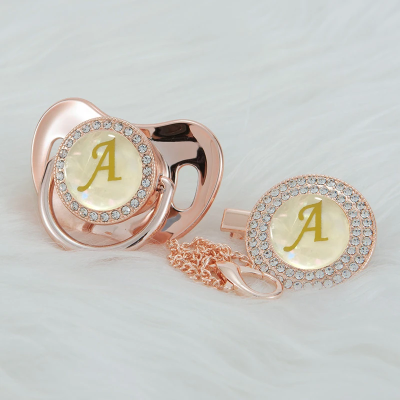 Пустышка MIYOCAR с перламутровыми инициалами, соска и зажим цвета розового золота, без БФА, уникальный дизайн, LPA