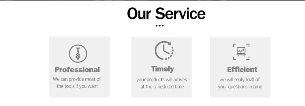 1. Мы можем предоставить большинство инструментов, если вы хотите2. Ваши товары поступят в запланированное время3. Мы ответим на все ваши вопросы вовремя