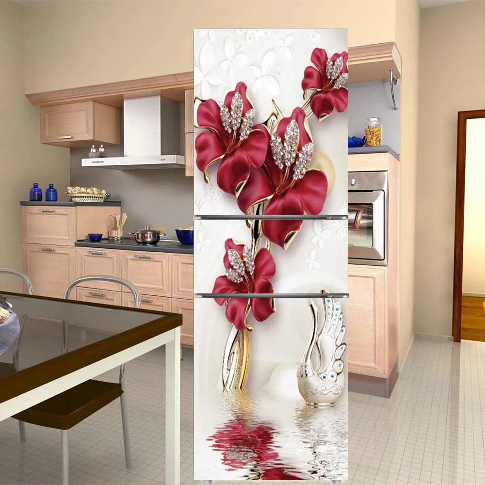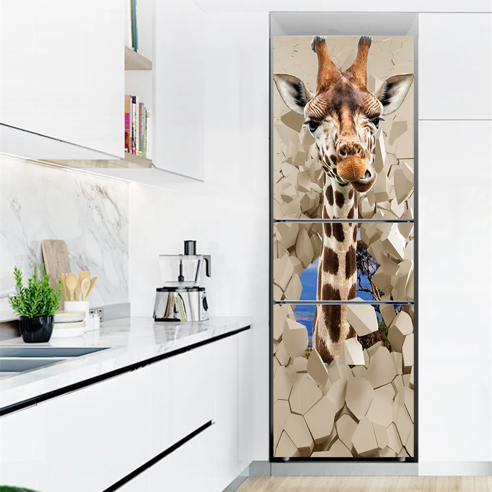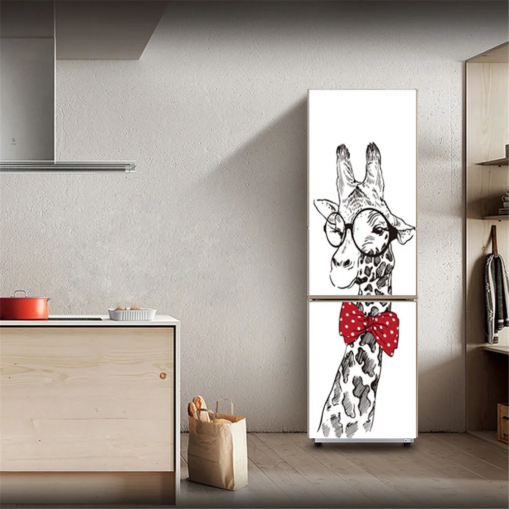 Мультяшный Печатный стикер на холодильник крышка двери Свежий фрукт цветок обновление клейкие ПВХ наклейки на холодильник Жираф кухонная наклейка