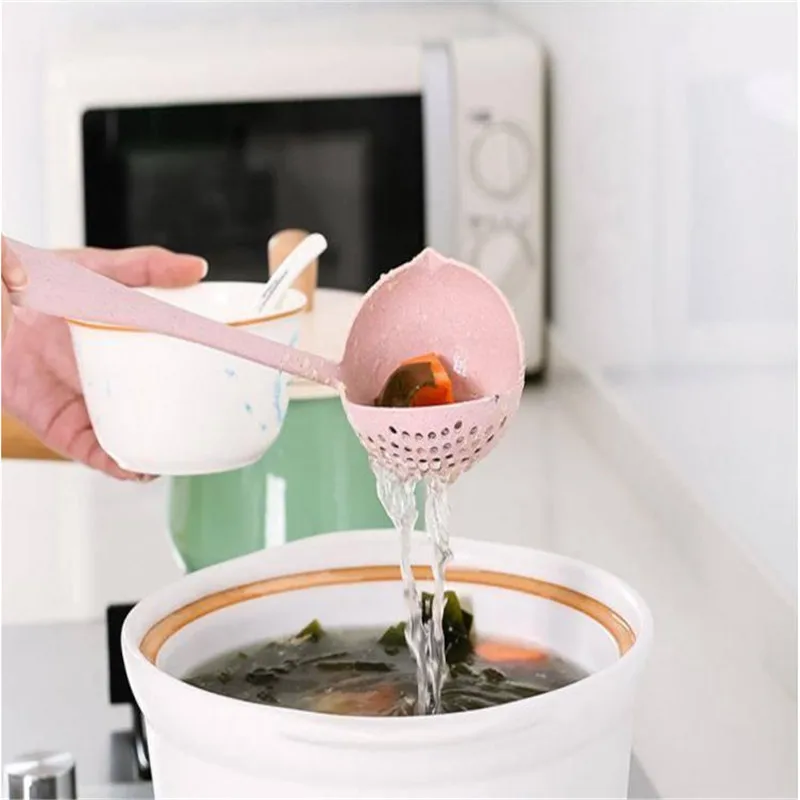 2 в 1 суповая ложка ложки с длинной ручкой, Кухня фильтр твердых Цв...