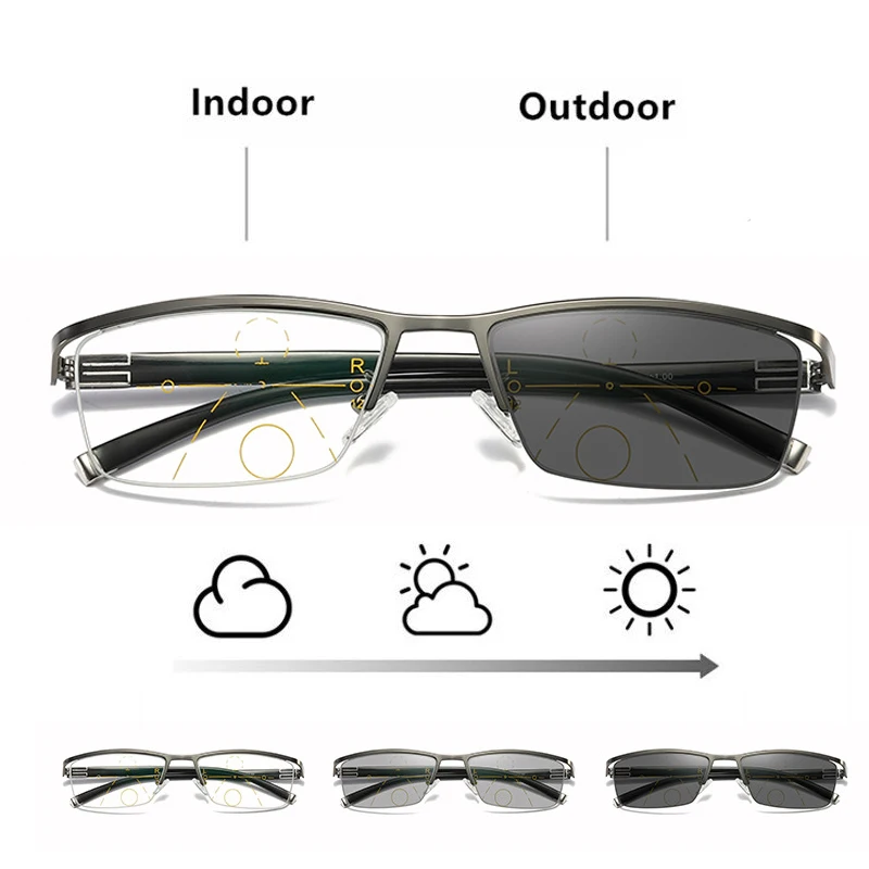 2020 Новейшие прогрессивные очки для чтения для мужчин и женщин мужчин анти-синий светильник фотохромные Мультифокальные пресбиопии очки полуоправа 1,5 2,0
