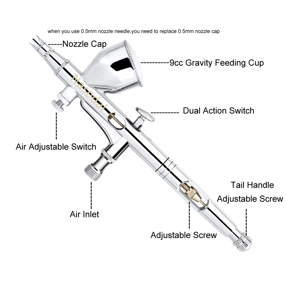 Аэрограф Двойного действия с автоматической остановкой Nasedal NT-24W, краскопульт 9 куб. См, 0,2 мм, 0,3 мм, пистолет для макияжа, дизайна ногтей, тортов и автомобиля, 0,5 мм