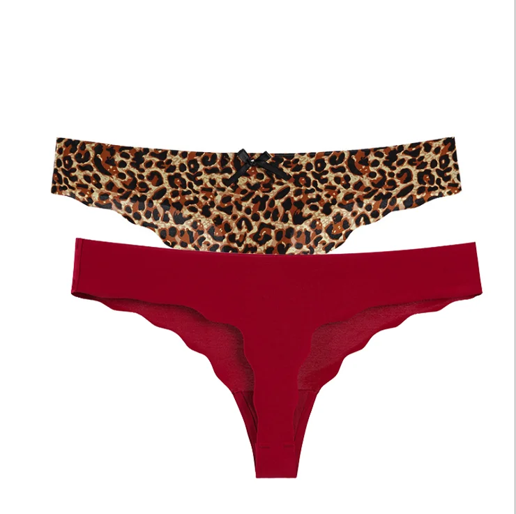 Стринги женские, леопардовые, шелковые, бесшовные, с низкой посадкой, 2 шт.лот