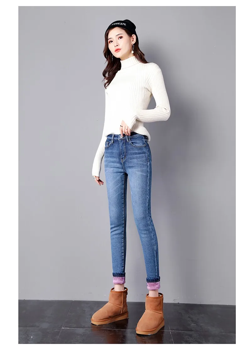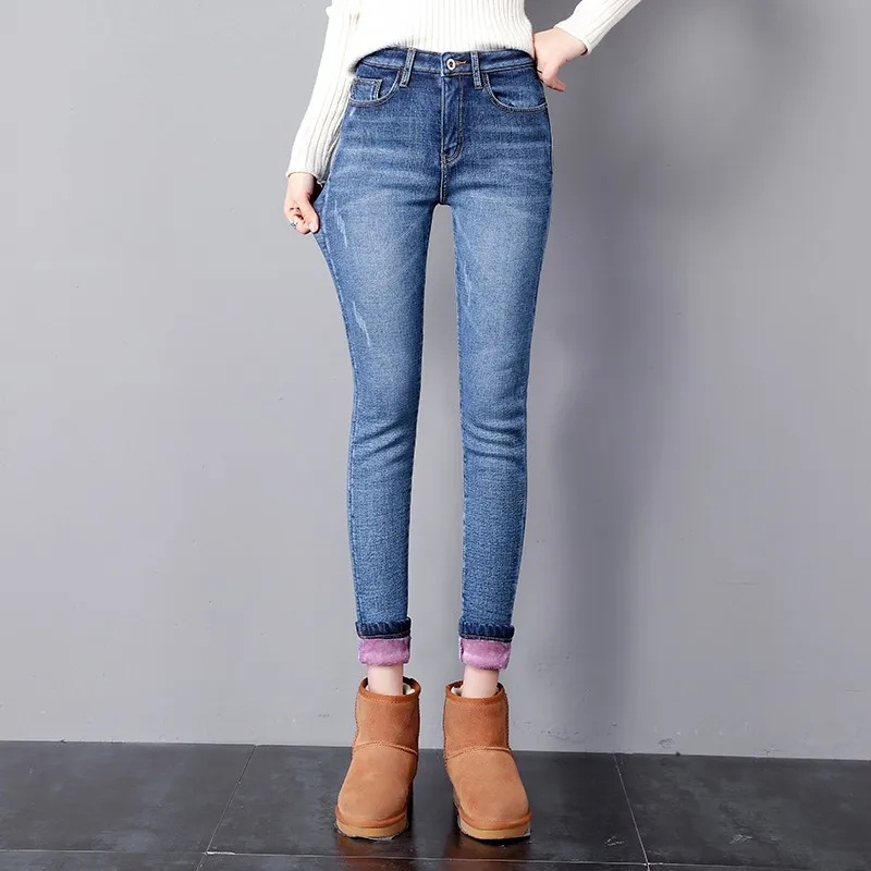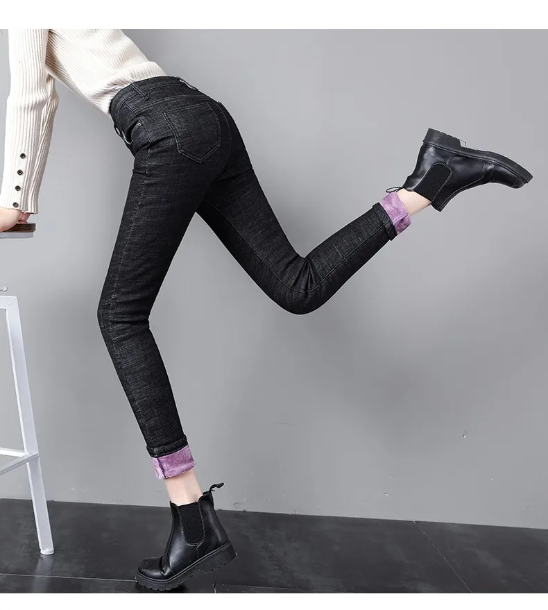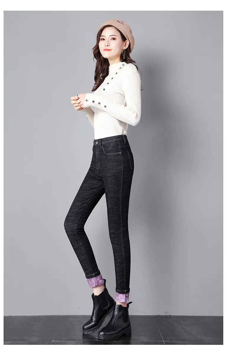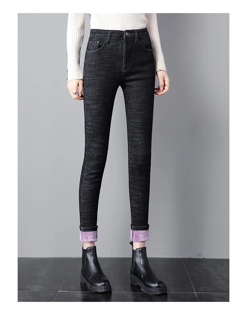 Джинсы-карандаш женские зимние, плотные, с высокой талией, на флисе