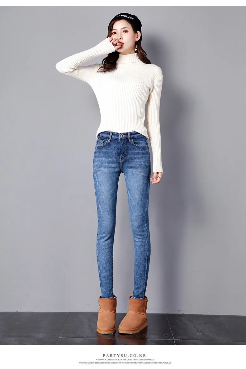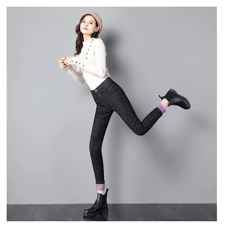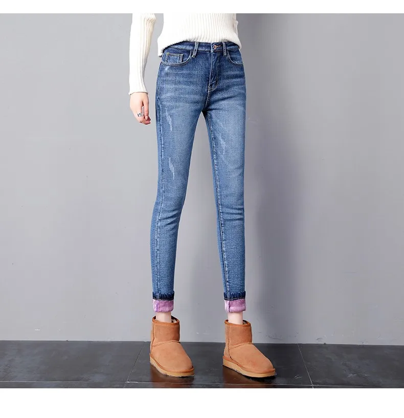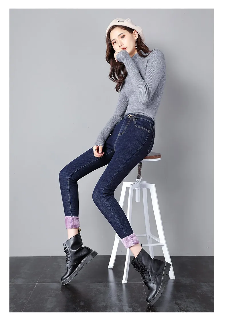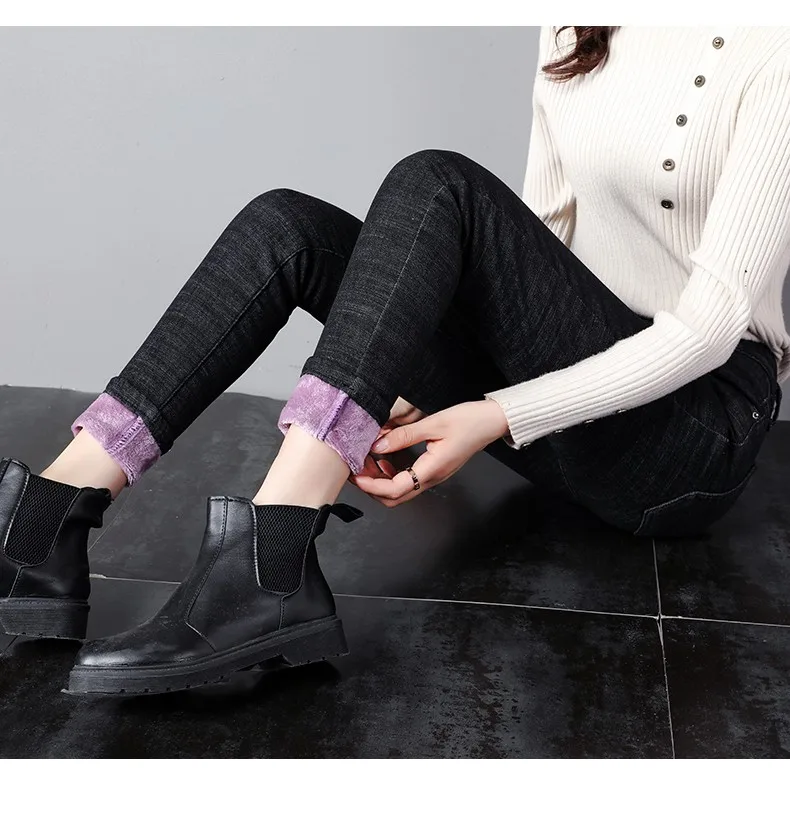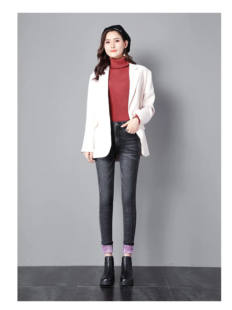 Джинсы-карандаш женские зимние, плотные, с высокой талией, на флисе