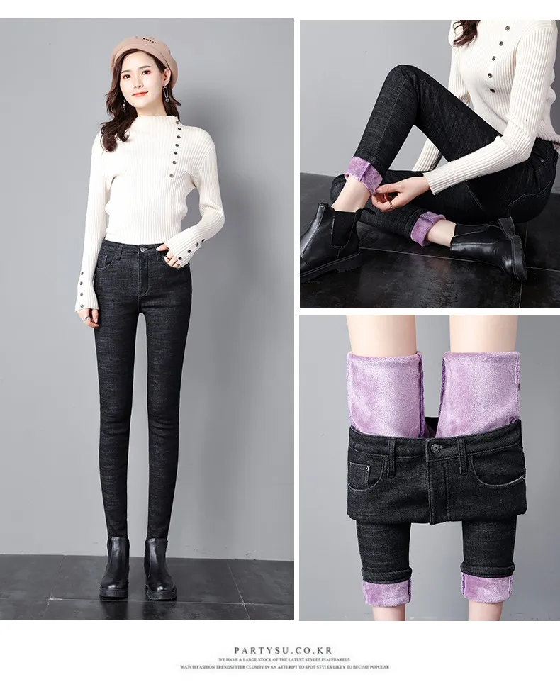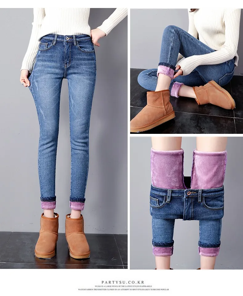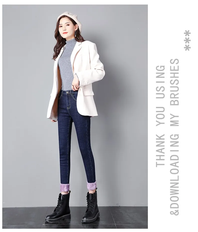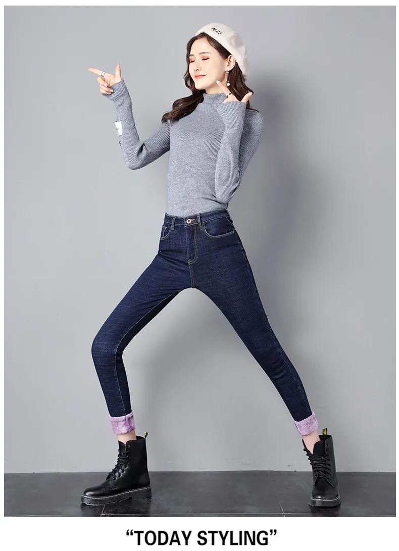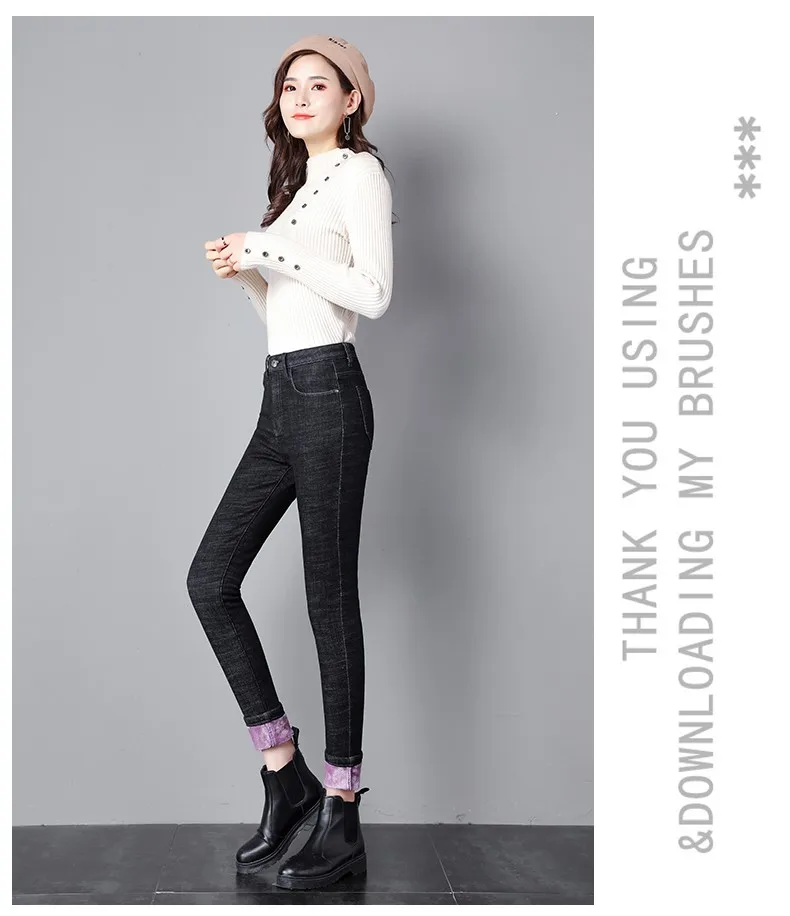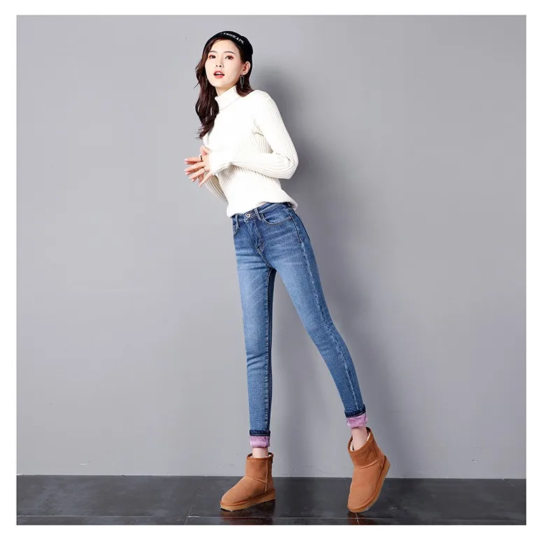 Джинсы-карандаш женские зимние, плотные, с высокой талией, на флисе
