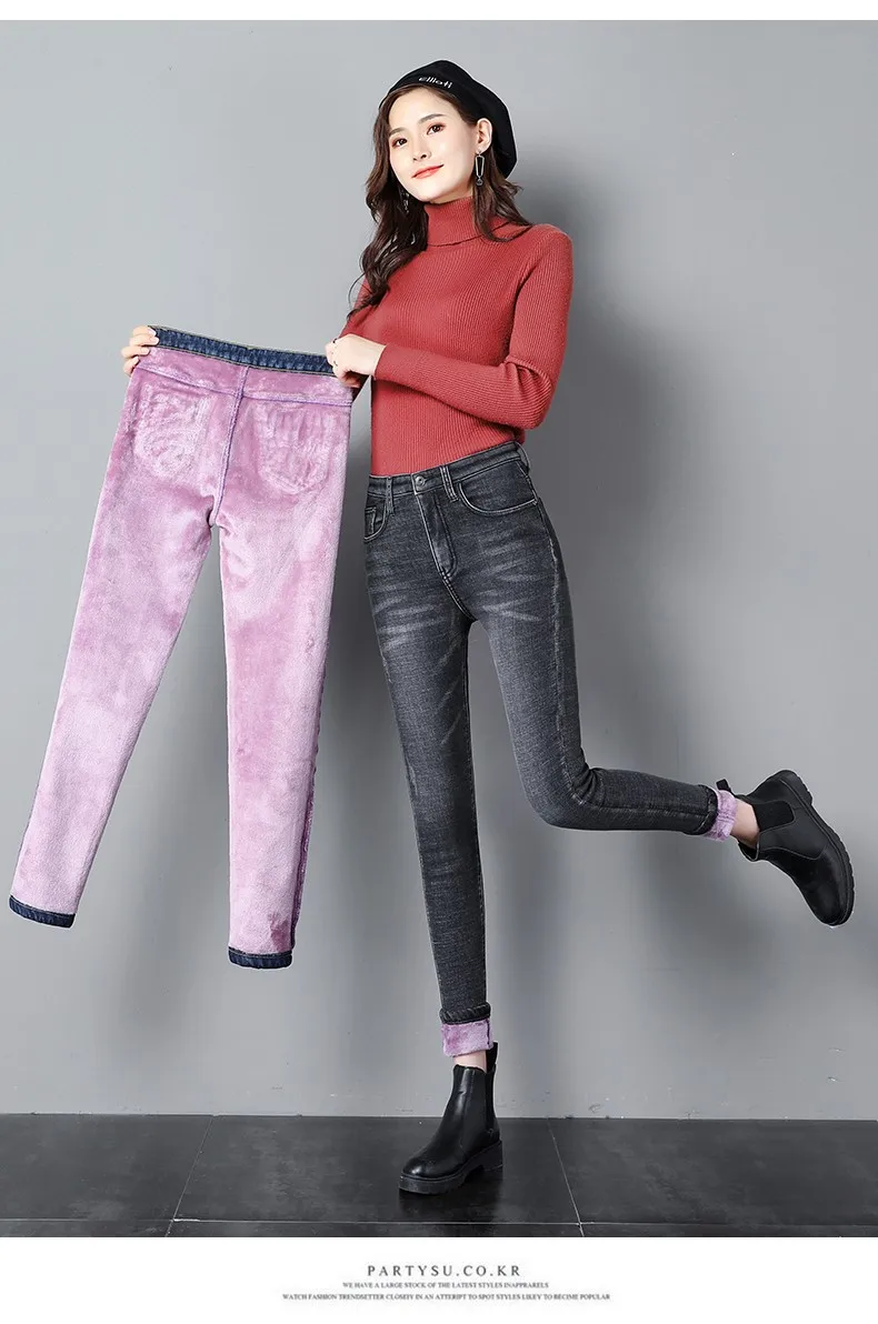 Зимняя женская одежда из бархата, фиолетовые флисовые джинсы для же...