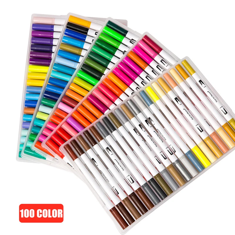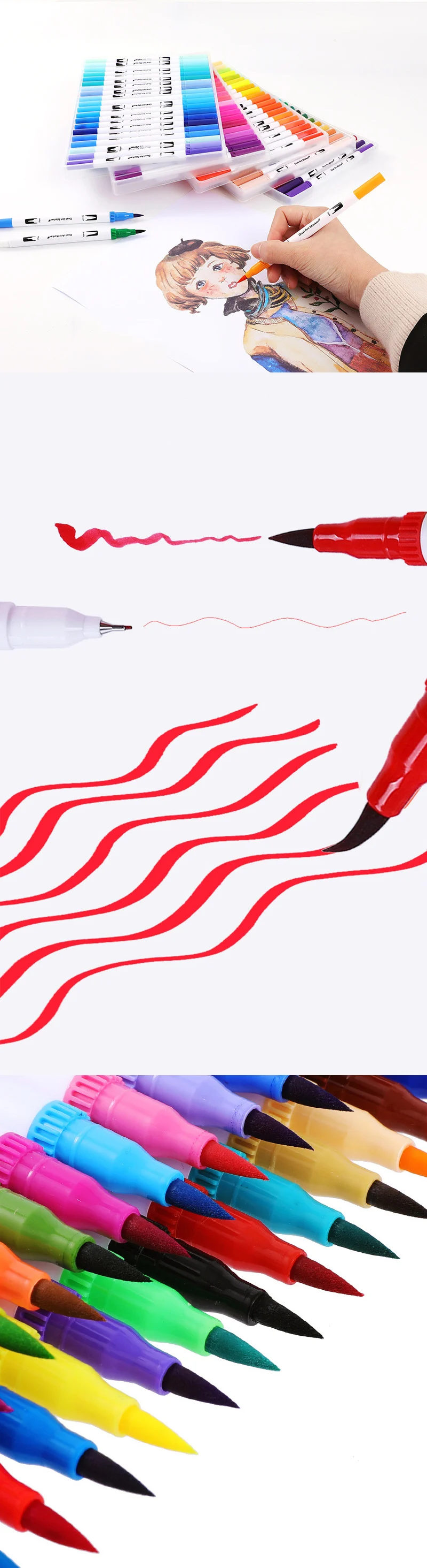 12/24/36/48/60/72/100 Цвет тонко пишущие чернила на водной основе двойная головка эскиз маркеры кисточки ручка для рисования Цвет ing книги дизайн товары для рукоделия