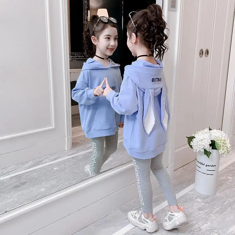 Костюм спортивный для девочек, на осень-весну, с капюшоном, 2020