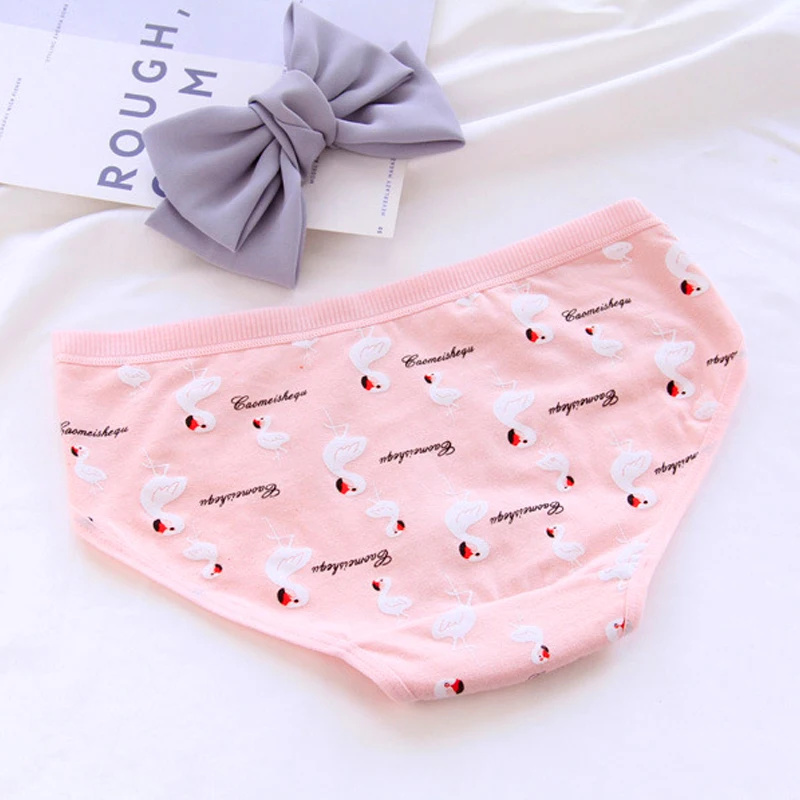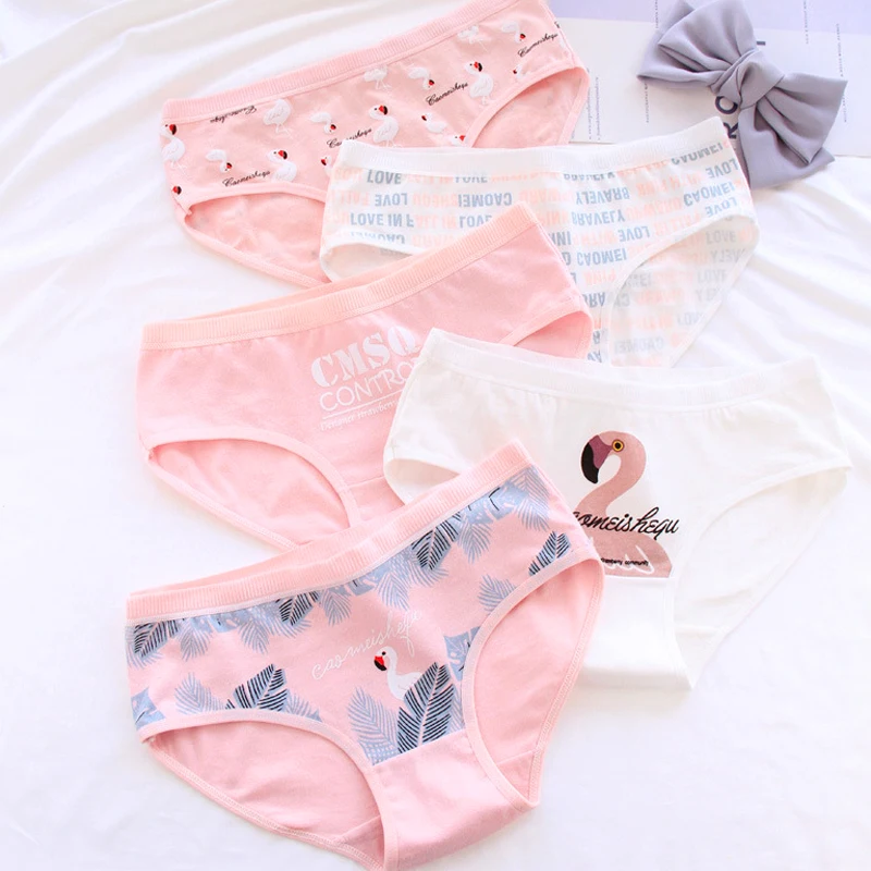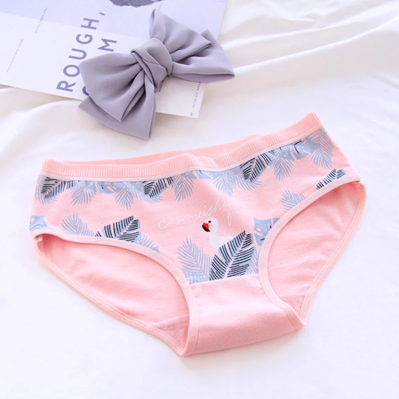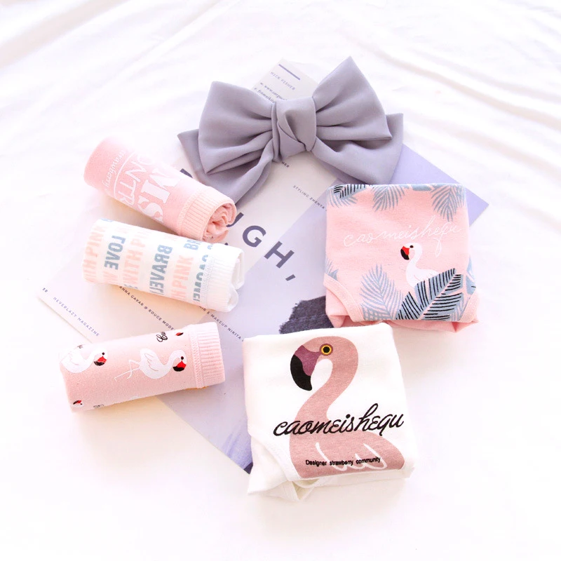 Трусики из 2020 хлопка с принтом фламинго, милое нижнее белье, нижнее белье с рисунком из мультфильма для девочек, дышащие Бесшовные трусы с высокой талией для девочек