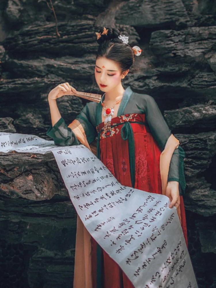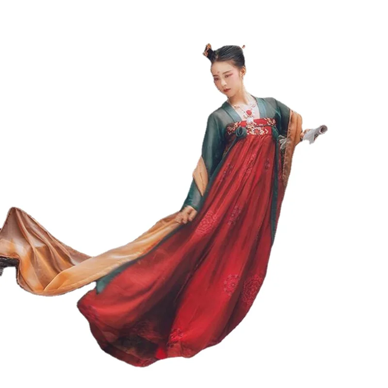 Женское традиционное китайское платье Hanfu с вышивкой в восточном стиле, костюм династии Тан для народных танцев