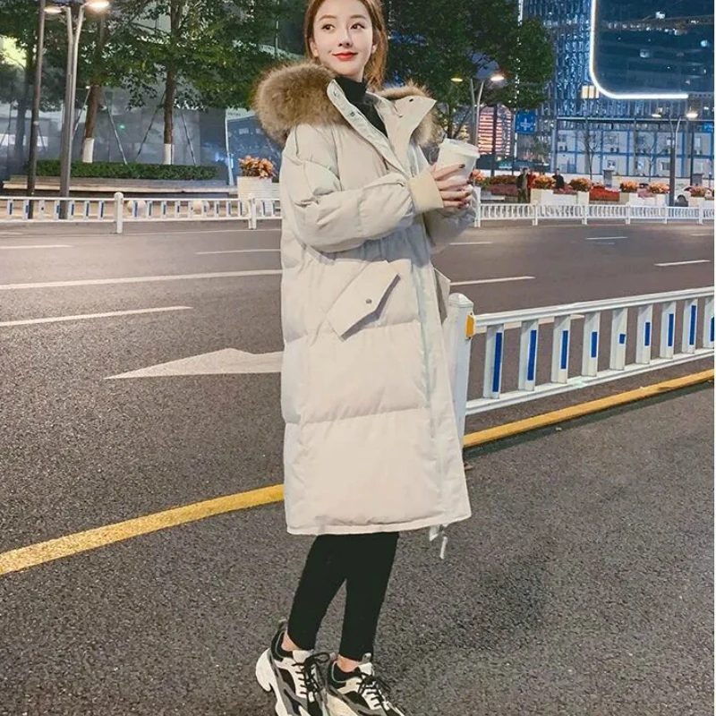 Женская зимняя длинная теплая пуховая парка, толстое хлопковое пальто с капюшоном, зимнее пальто с меховым воротником