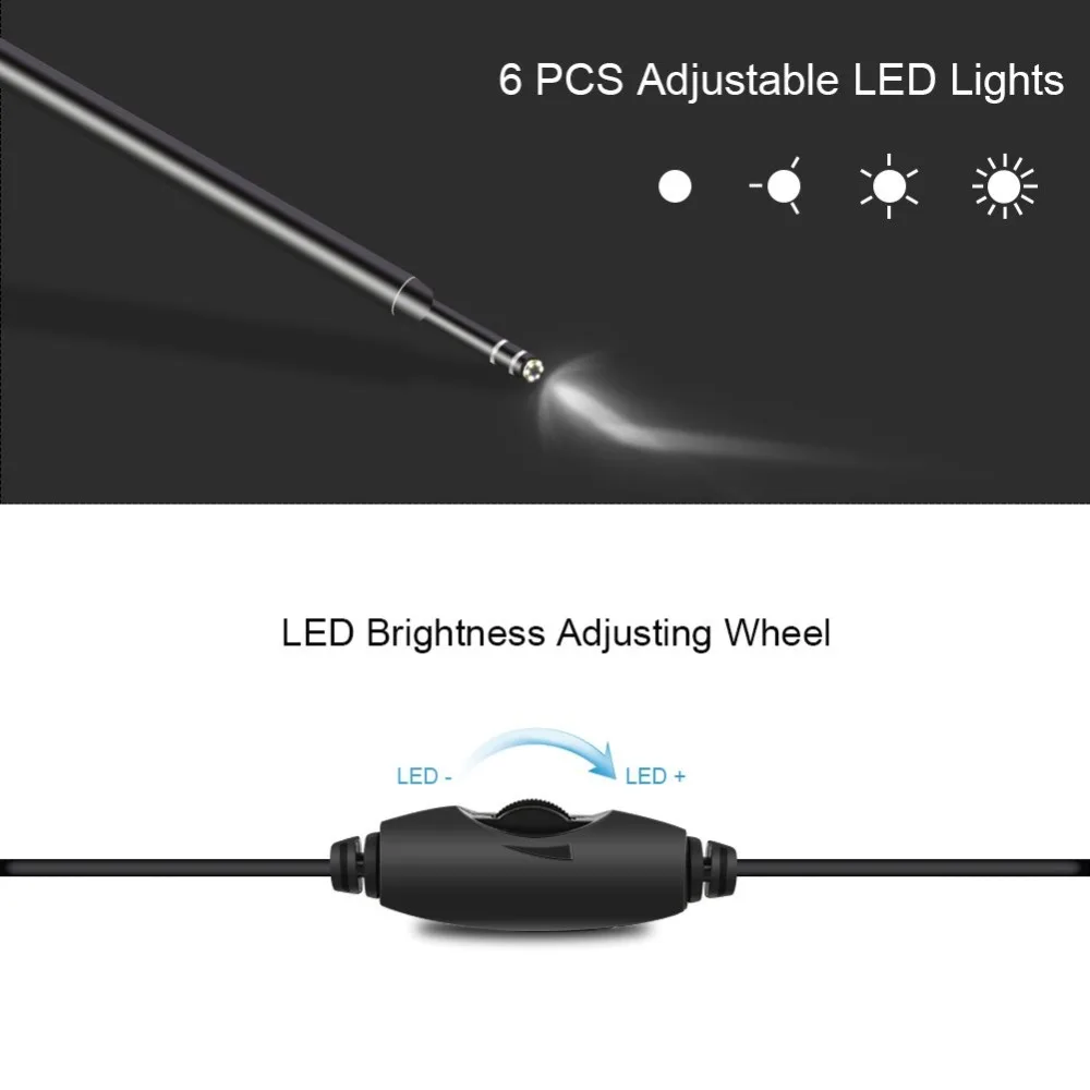 1. Этот USB earoscope является универсальным дизайном, который вы можете использовать на вашем Android телефоне, Windows и Mac системах, ПК и ноутбуках. Дополнительный usb-адаптер. Вставьте для использования! Линзы для ушной ложки можно мыть. Usb-интерфейс нельзя стирать, лучше стирать спиртом. 2.3-в-1 дизайн USB эндоскоп бороскоп: он сочетает в себе 3 штекера типа s в одной части для type-C, Android micro USB и USB порт компьютера, которые позволяют ему хорошо работать со смартфоном Android 4,2 + с функцией OTG и UVC и Android смартфоном/планшетом с портом micro USB, а также Windows XP/Vista/ 7/8/10/MAC ПК или ноутбуки с usb-портом. Нет необходимости в дополнительной конвертации кабеля, гибкое использование для различных устройств. 3. Материал безопасности: пищевой нетоксичный и безвредный ПВХ материал, более надежный в использовании. Матовый нескользящий материал, удобный захват, нескользящий внешний вид, чистые уши. Если есть проблема с слуховым каналом, он хорошо виден! 4. Универсальный: он может проверить слуховой канал, а также барабанную перепонку, рот, десны, горло, полость носа, корни волос головы и другие части тела. Ушные ложки длиннее, тоньше и проще в использовании. Не только отлично подходит для ваших ушей, но и отличный инструмент для ваших собак. 5.IP 67 водонепроницаемый и антискальдированный чип дизайн: головка Thecamera соответствует водонепроницаемому уровню IP67, что позволяет использовать изопропиловый спирт для очистки. Примечание: usb-помехи не являются водонепроницаемыми. 6. Безопасно для использования: чип камеры t находится далеко от камеры, поэтому вы можете использовать его, не беспокоясь о проблемах с нагревом. 7. Эндоскоп для очистки ушей не только может проверить слуховой канал, но также может проверить барабанную перепонку, рот, десны, уши, нос, горло, полость носа, корень головы и другие части тела. Это незаменимый инструмент для каждой семьи, каждой классной комнаты, больницы для домашних животных и т. д. идеально подходит для докторов, медсестер, студентов и домашнего использования. 8. Различные аксессуары, доступные для различного использования: вы можете просматривать видео в реальном времени вашего уха и удалять ушной воск более полностью и безопасно, сохранять фотографии и видео и отправлять специалисту здравоохранения для быстрой и легкой консультации. 9.5.5 мм камера, регулируемый 6 светодиодный светильник s можно регулировать с помощью диммера кнопки блока управления в соответствии с вашими потребностями, широкое фокусное расстояние, широкое воздействие, значительно уменьшенное воздействие изображения, цветовые эффекты в темных или низких условиях светильник без искажений, Дисплей ушного канала наиболее реалистичное и четкое изображение линзы склеены внутри сопла, и размер линзы больше, чем сопло, так что он не будет падать, попрощайтесь с ослепляющим копанием, чистота и безопасность.