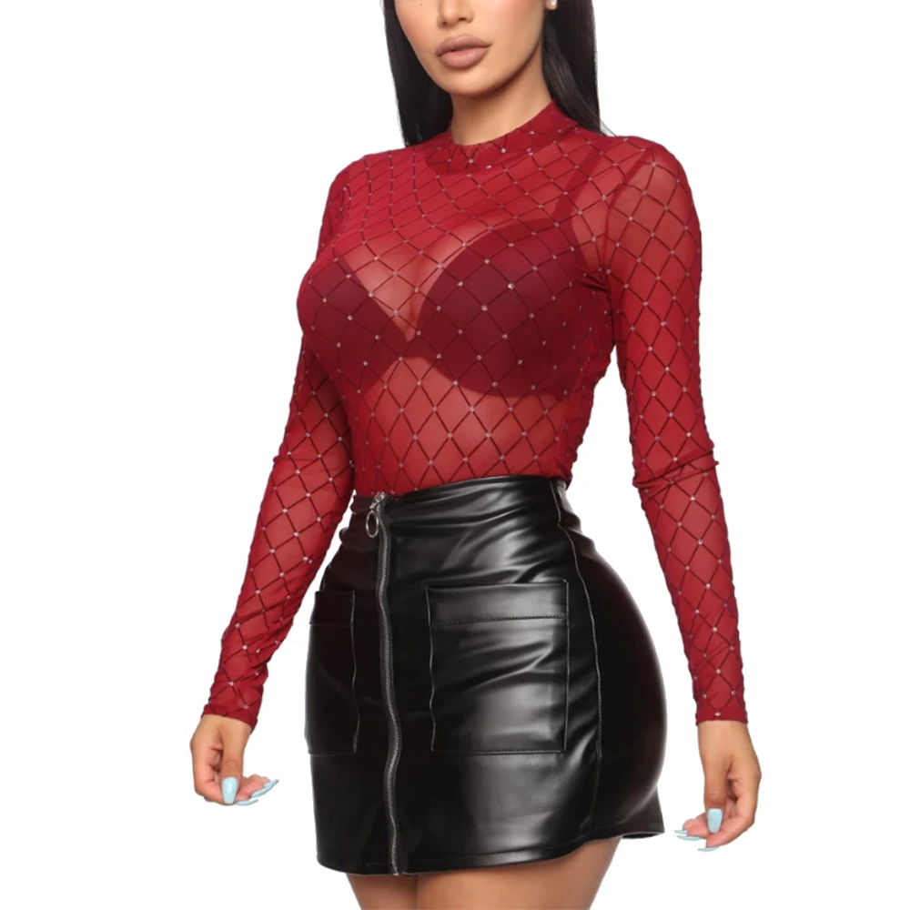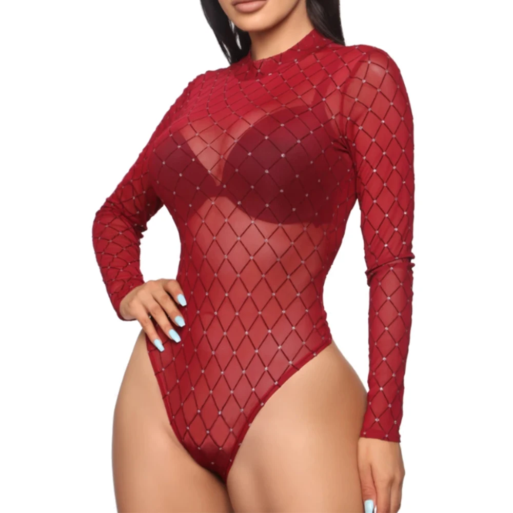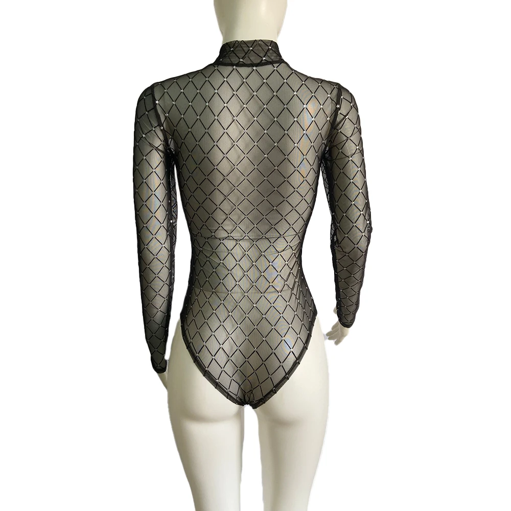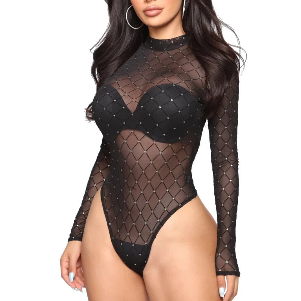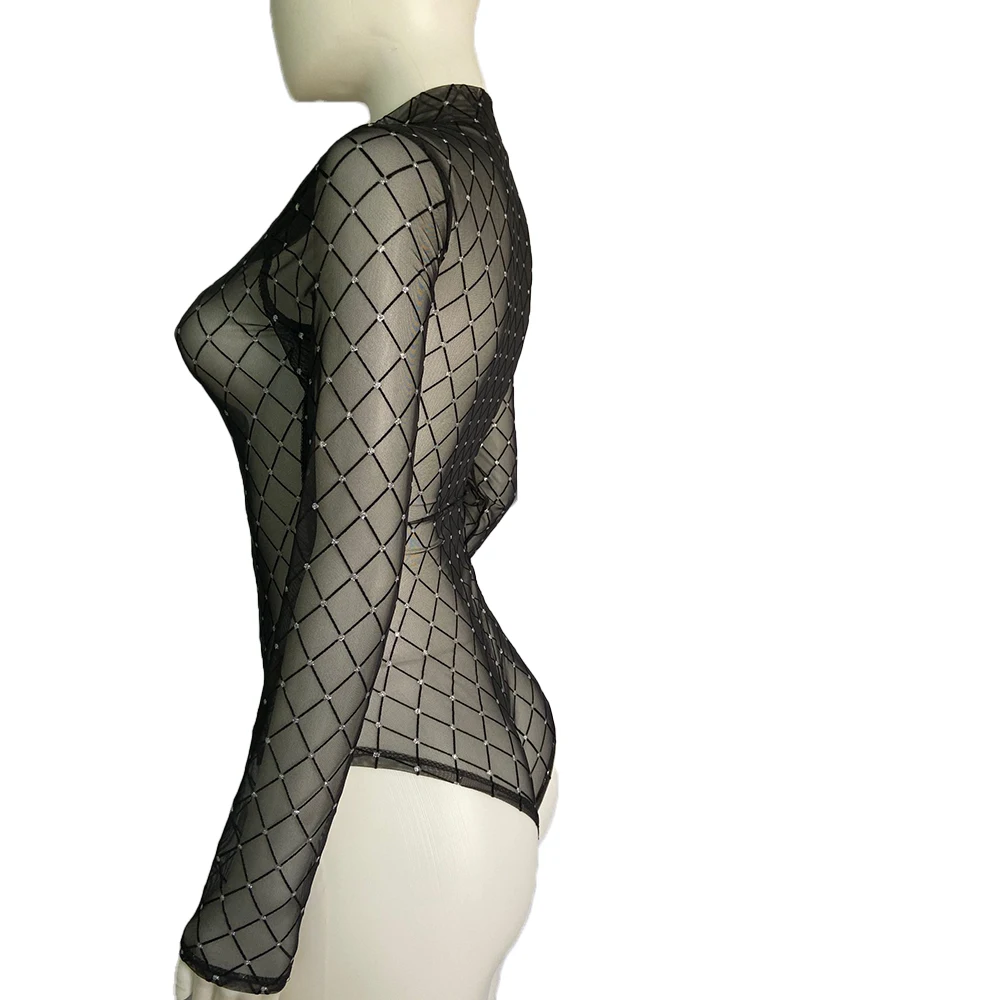 Женское летнее боди с длинным рукавом, цельный сетчатый прозрачный купальник, Облегающий комбинезон, комбинезон, футболка, топ