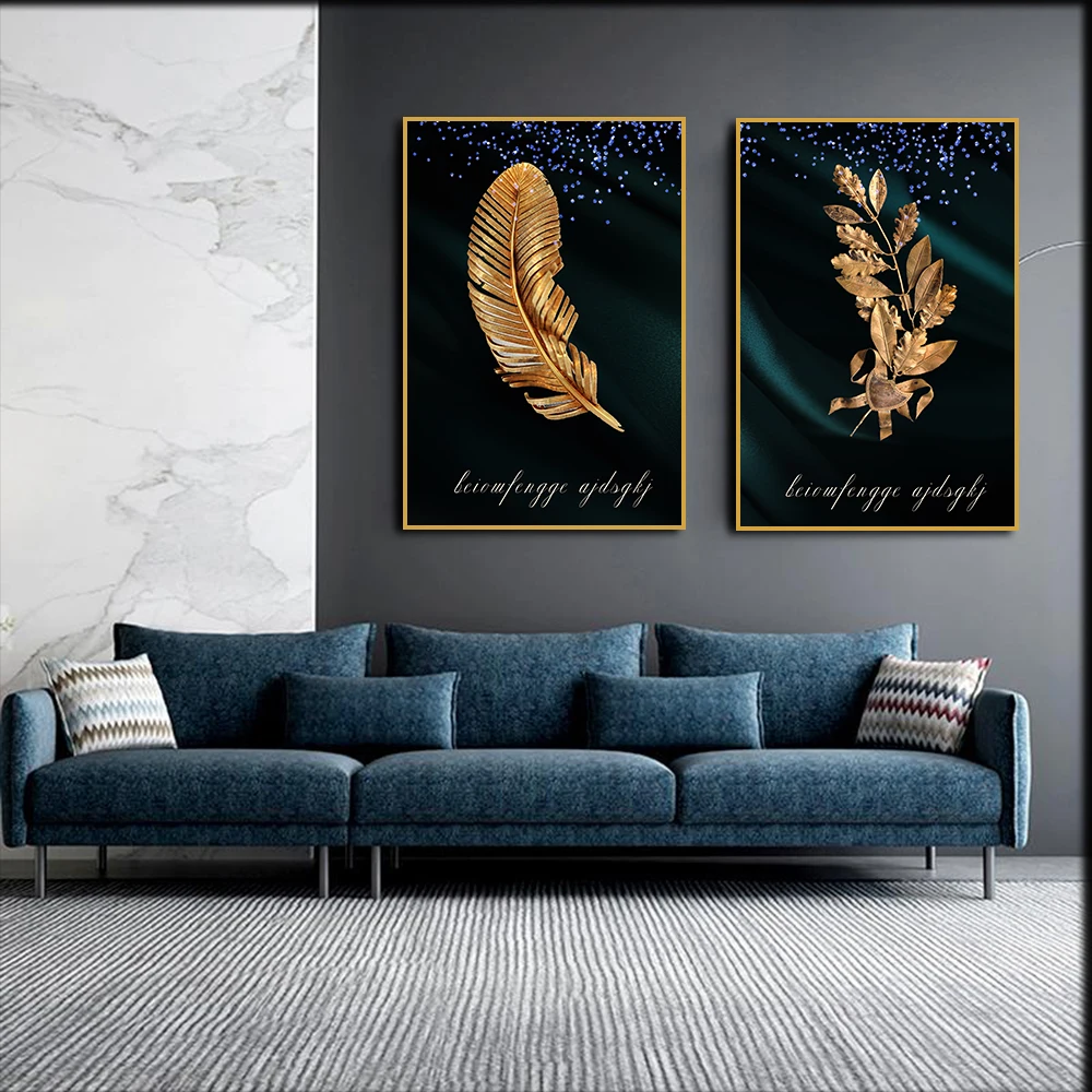 Настенное искусство абстрактная картина с изображением золотых растений листьев современный стиль холст печать художественный постер для гостиной уникальное украшение