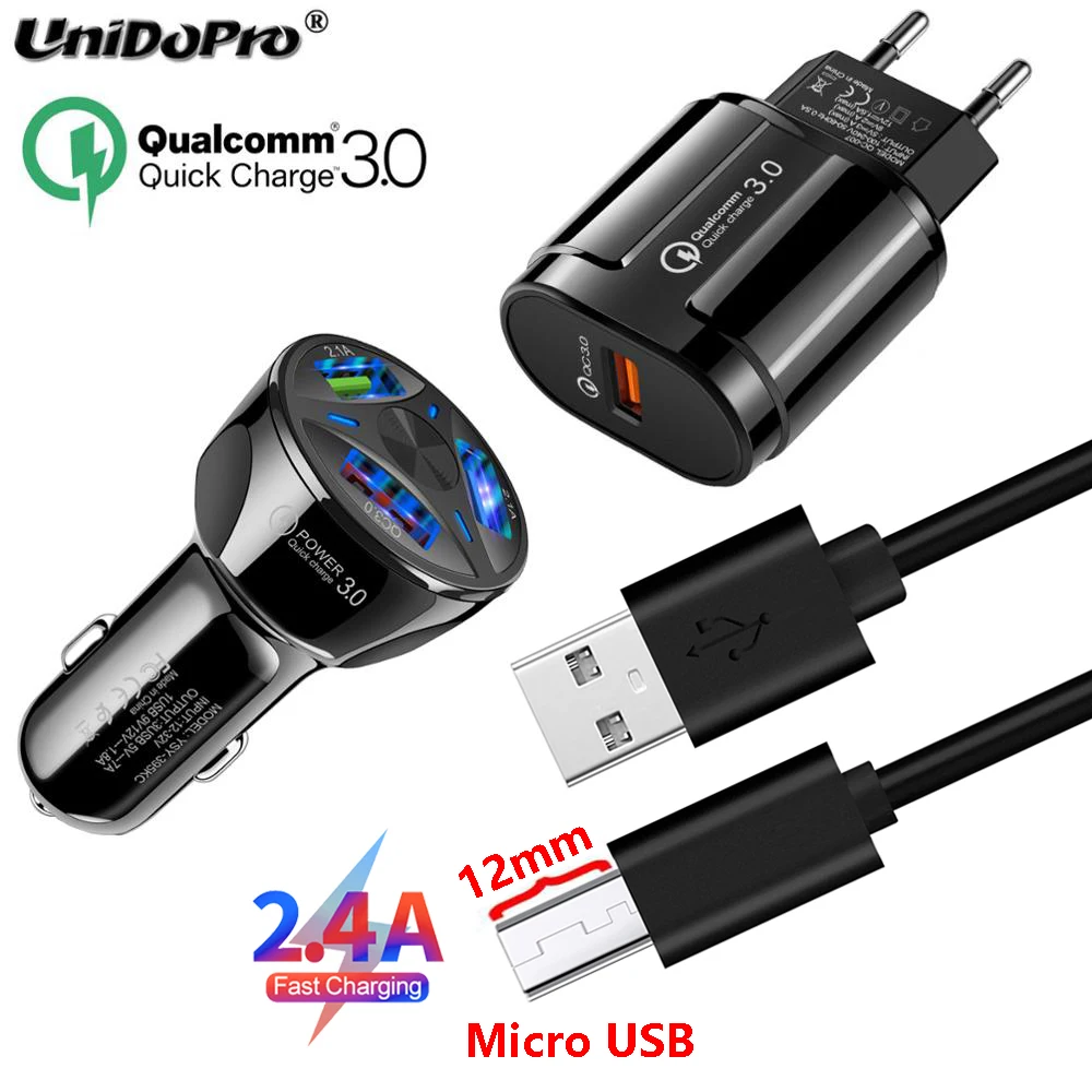 UNIDOPRO QC 3,0 EU AC зарядное устройство, QC 3,0 5V 2.4A 3USB автомобильное зарядное устройство Adatper с 12 мм расширенным наконечником Micro USB кабель