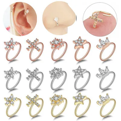 Серьга-Кольцо из хирургической стали, маленькие серьги-кольца с кристаллами для пирсинг носа, Козелка, ювелирных изделий для пирсинга, 12 шт.
