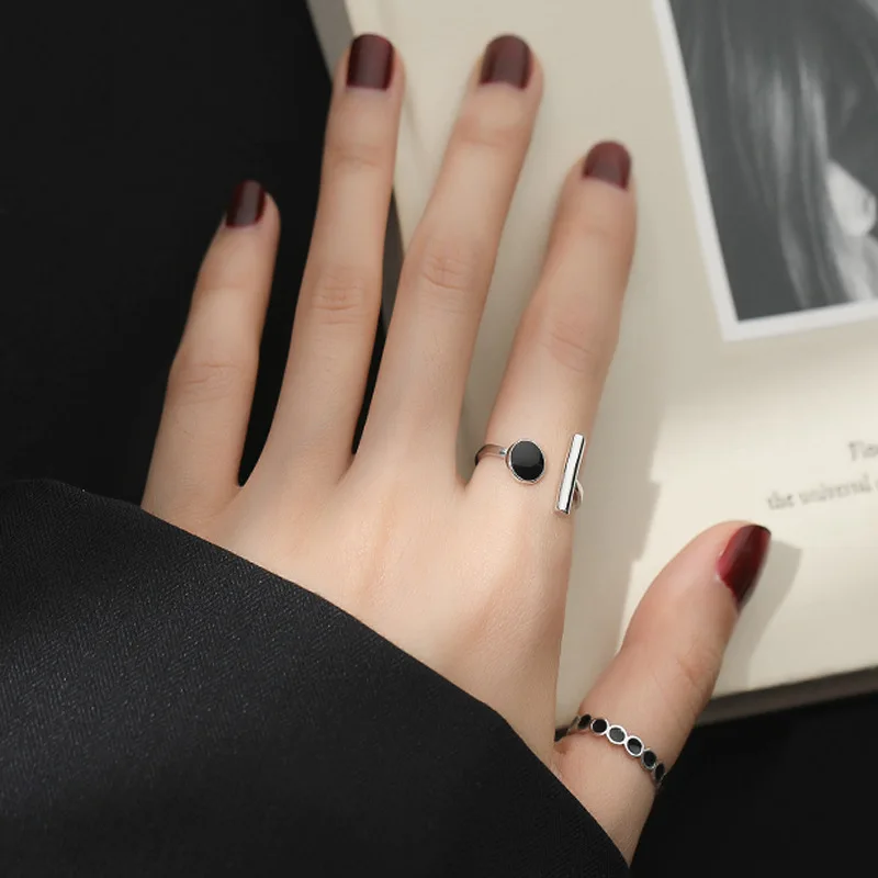 Кольца в стиле панк серебряного цвета, круговые геометрические кольца, черные глазурованные кольца в форме капли, крутые модные подарочные украшения для женщин и девушек