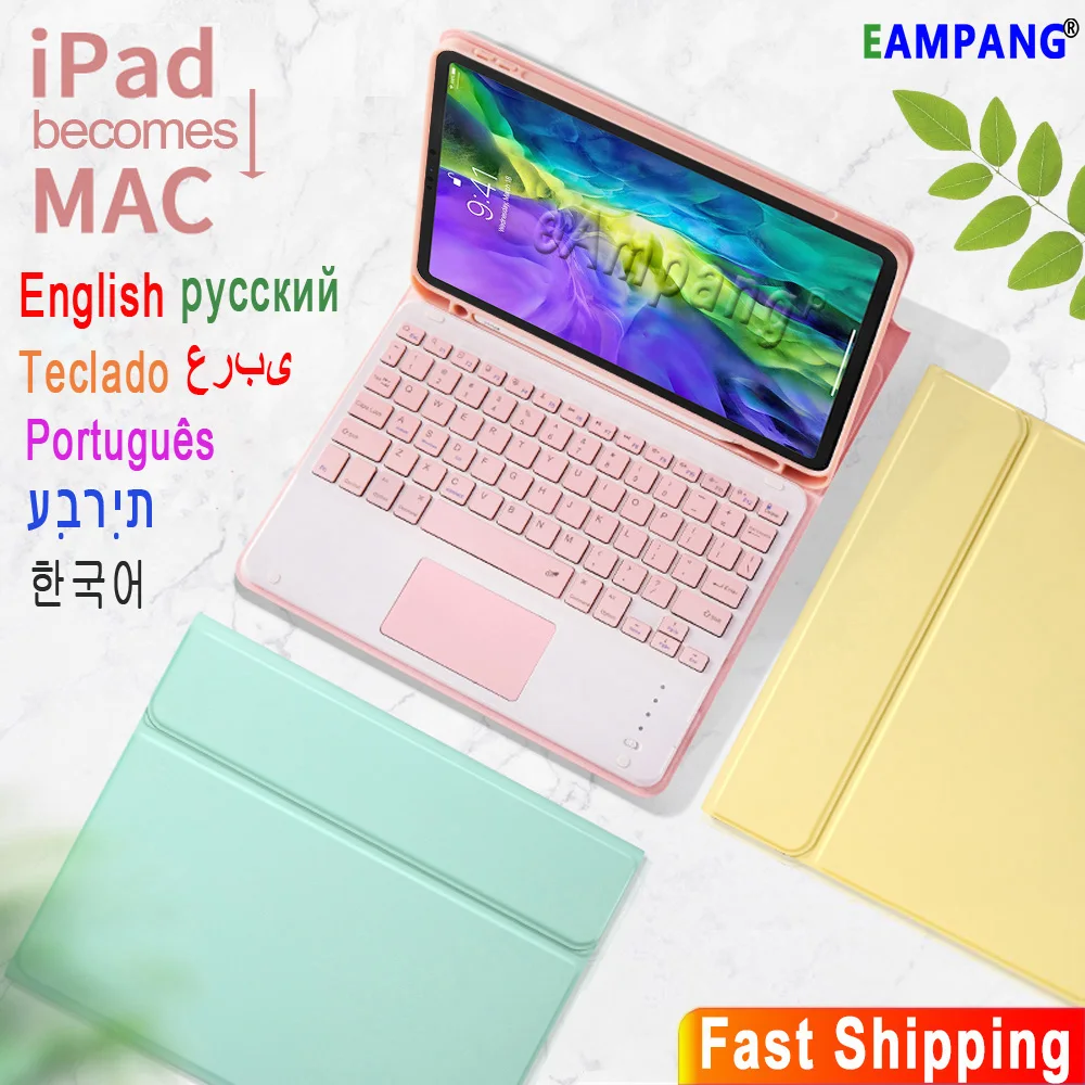 Чехол с клавиатурой для iPad 10,2 9 поколения, Арабская, испанская, русская, Корейская клавиатура, чехол для iPad 7, 8, 5, 6, Air 3, 4 Pro, 11