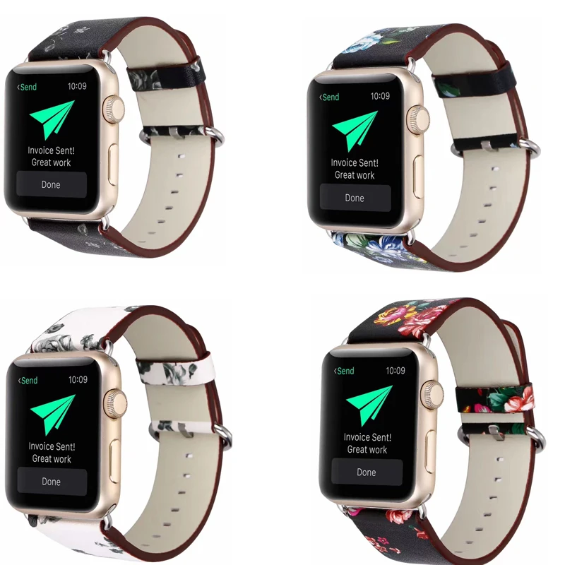 Кожаный ремешок с цветочным принтом для Apple Watch, ремешок 4238 4...