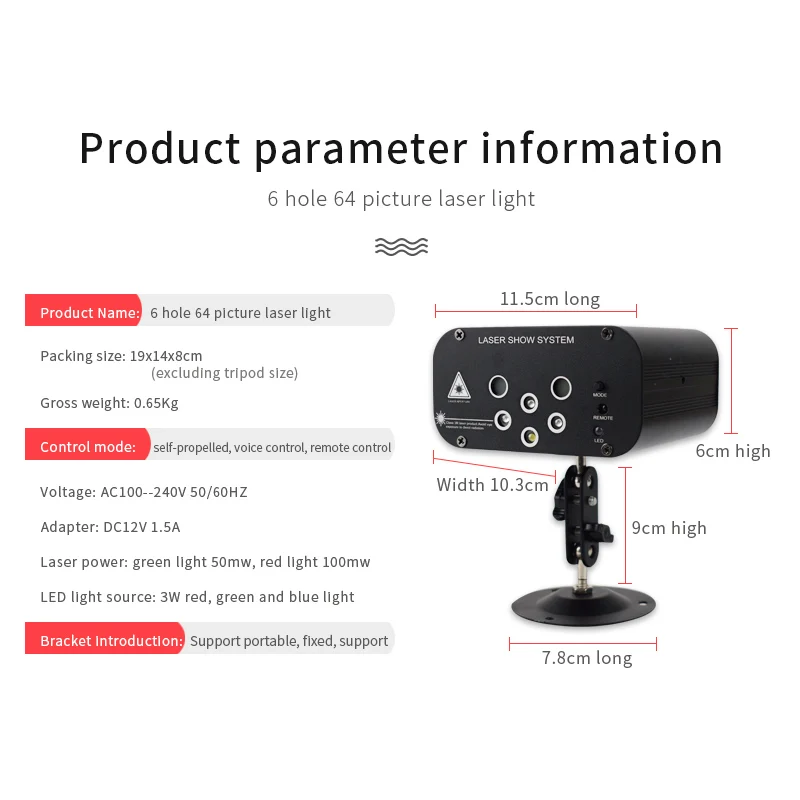Новый лазерный диско-прожектор с 6 отверстиями и 64 узорами