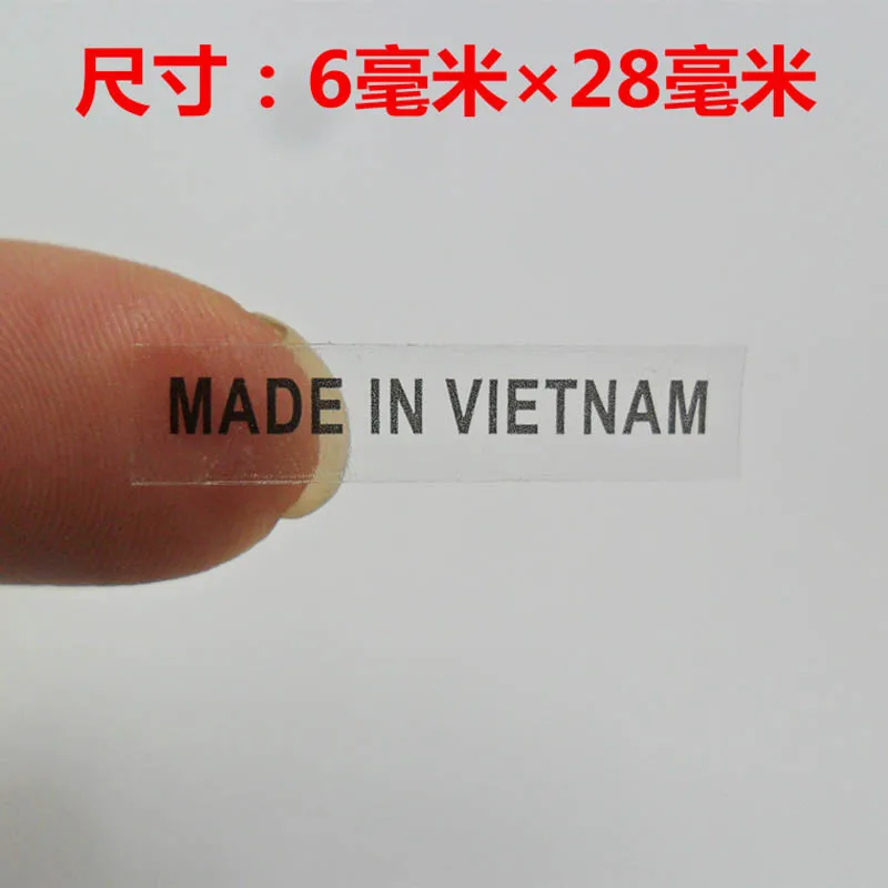 Страна происхождения наклейка 1000 шт. 6x28 мм прозрачная, сделано на вьетнамской этикетке