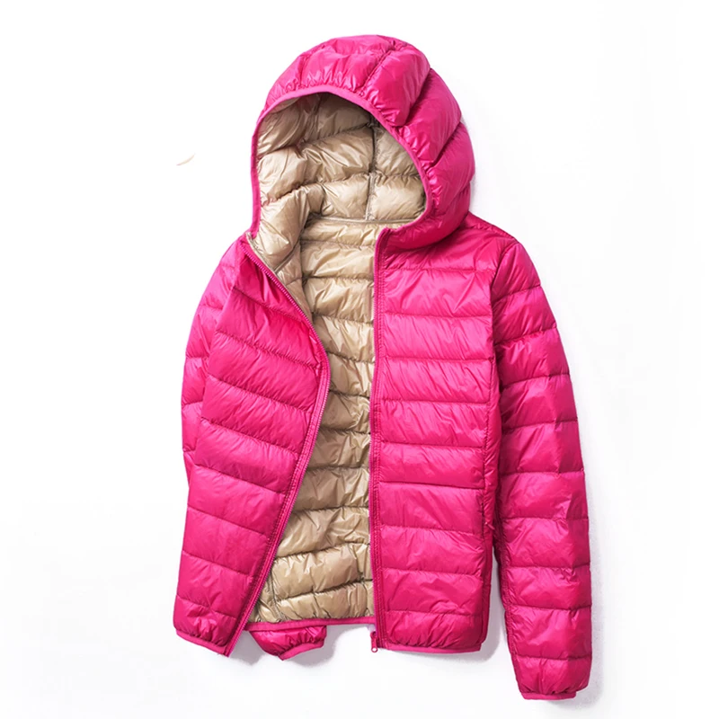 Новинка Осень-зима 2020, Двухсторонний пуховик, женское повседневное короткое пальто с капюшоном и длинным рукавом, ультра тонкий светильник, пуховик на утином пуху
