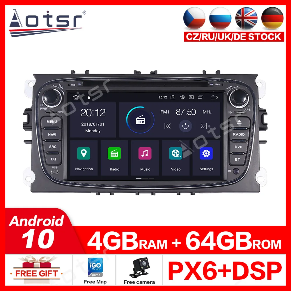 Автомобильный мультимедийный плеер Android 10,0, 4 Гб + 64 ГБ, GPS, Авторадио для FORDFocusMondeoS-MAX Galaxy, стерео радио, мультимедиа