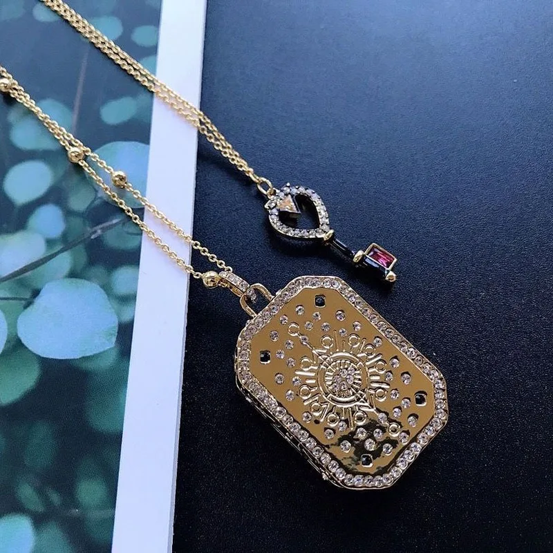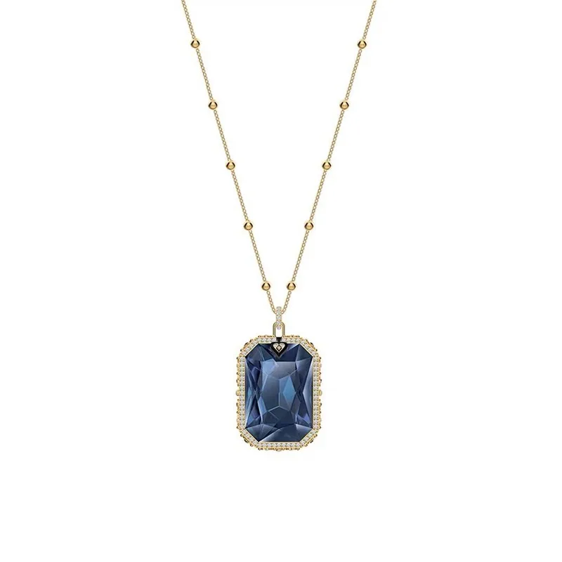 SWA1:1 модные ювелирные изделия Высокое качество Tarot Брендовое двухстороннее ожерелье с кристаллами на свитере синее прямоугольное кристаллическое жемчужное ожерелье