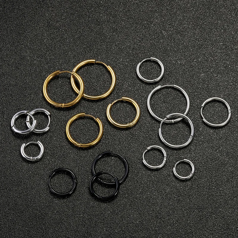 Круглые ювелирные украшения из нержавеющей стали для ушей 1 пара, антиаллергенные серьга в виде кольца из нержавеющей стали с тонкими серьга с пряжкой 2 мм в готическом стиле