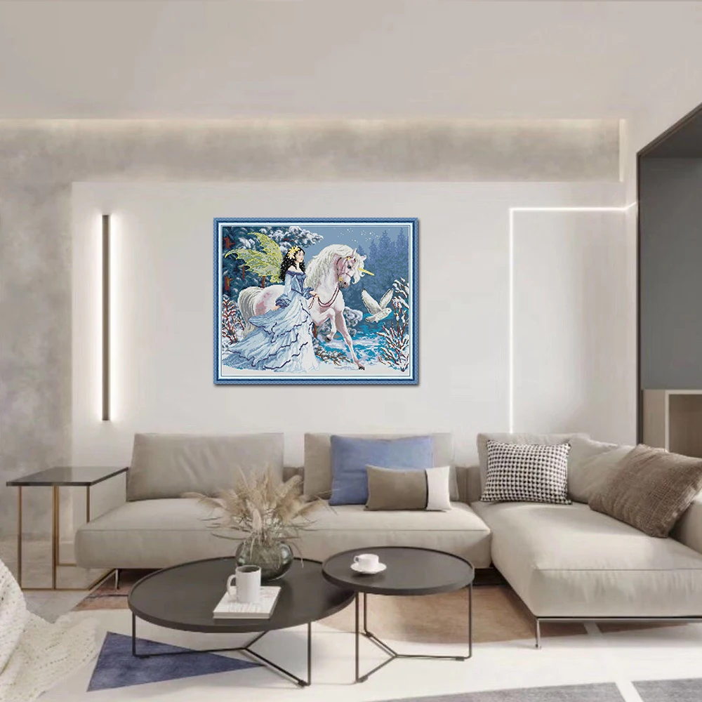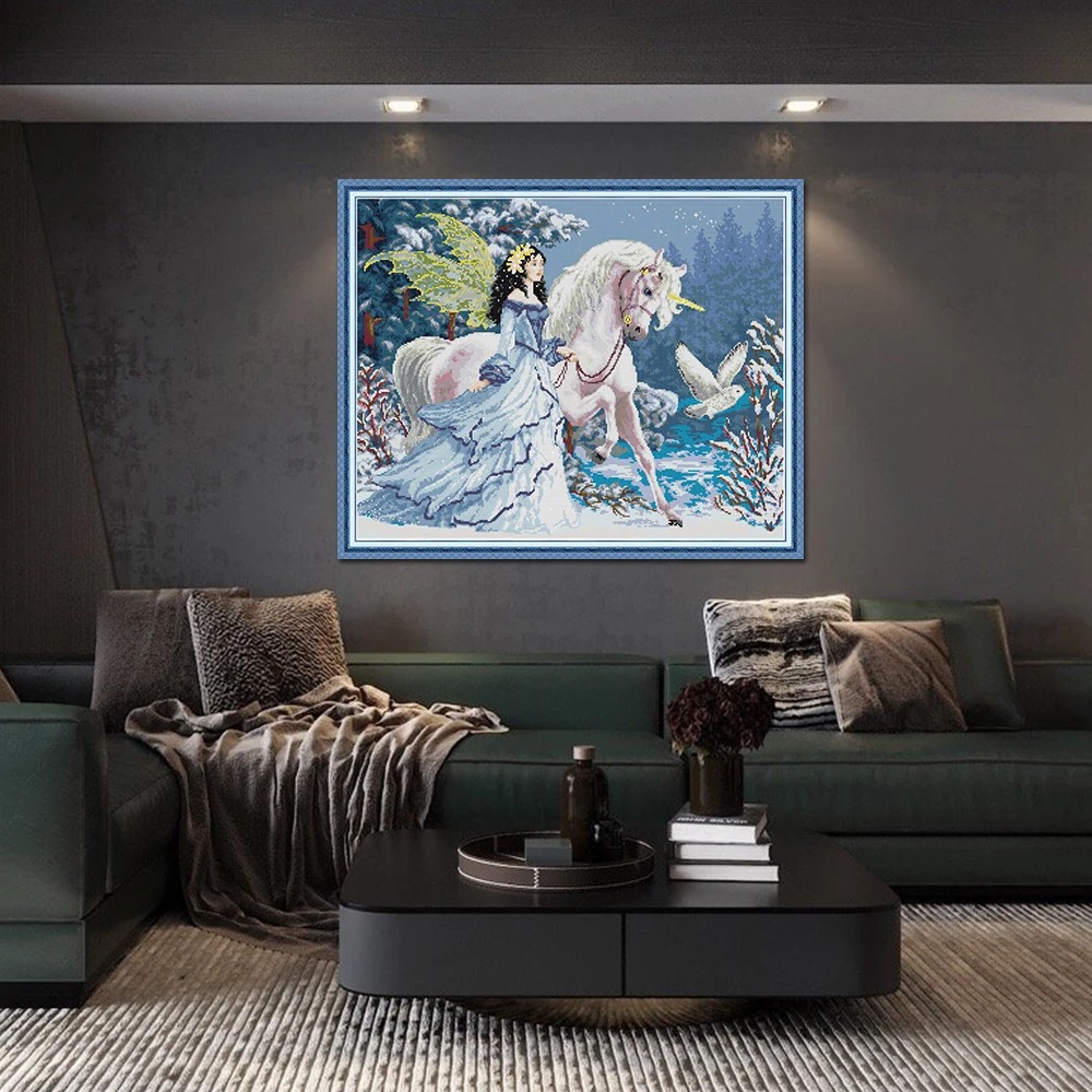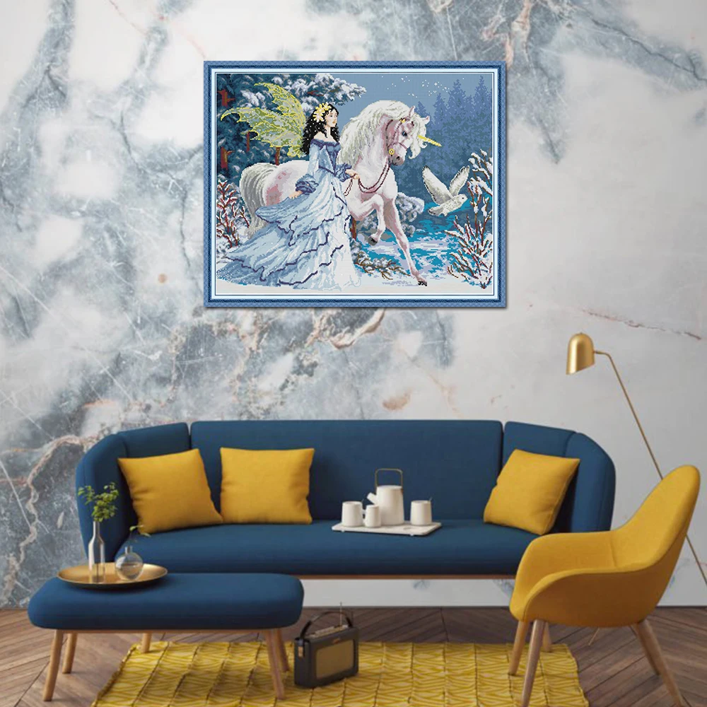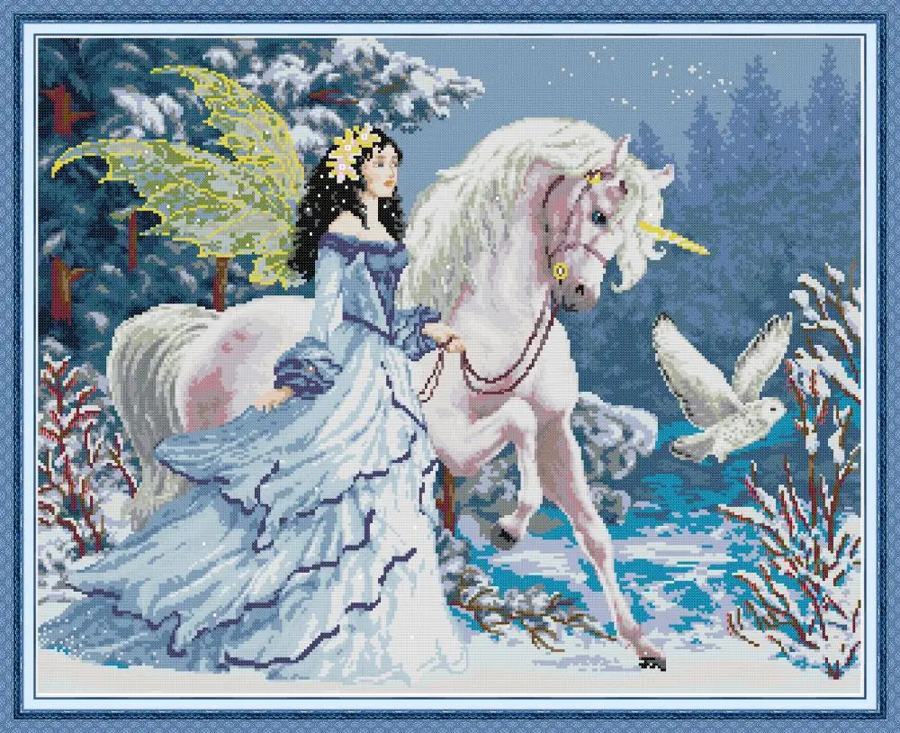 Радость воскресенье эльфы езда единороги RA320 14CT 11CT Счетный и штампованный домашний декор сказочная вышивка DIY Набор для вышивки крестиком
