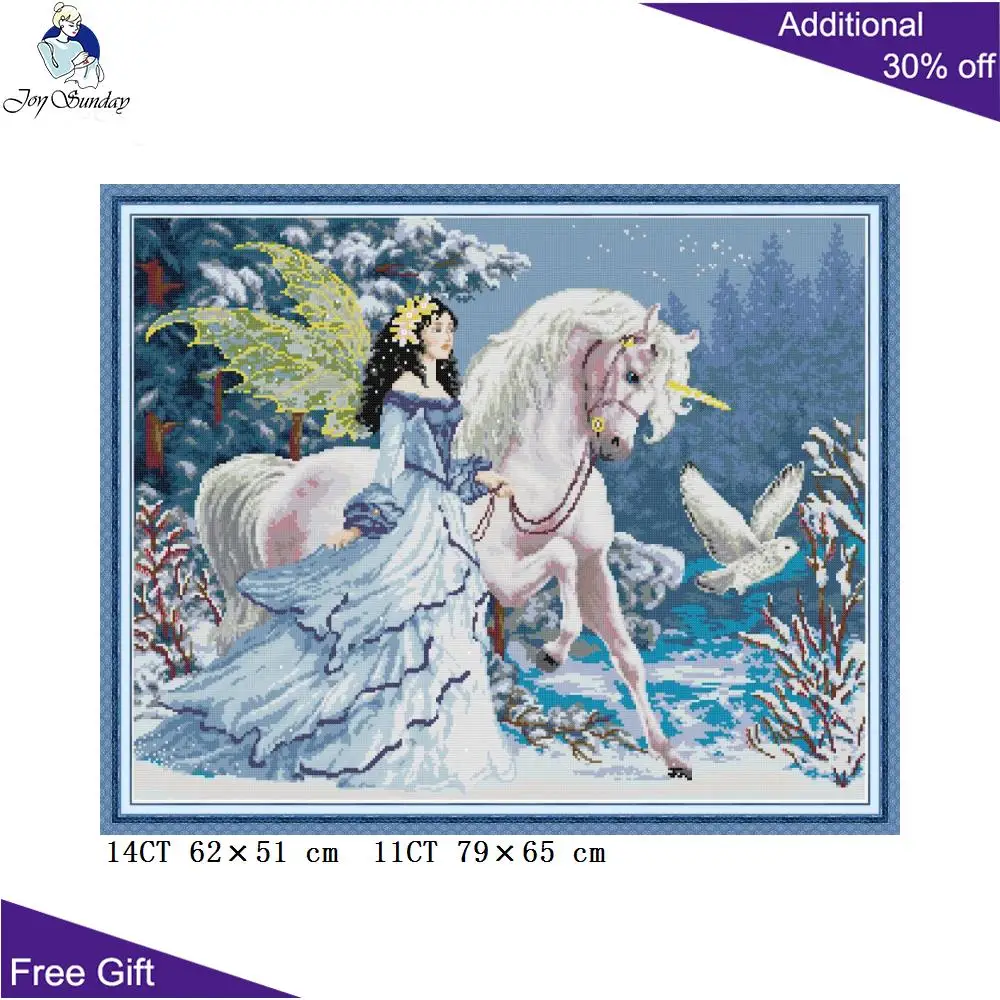 Набор для вышивки крестом Joy Sunday, эльфы, наездники, единороги RA320, 14CT, 11CT, счетный и штампованный домашний декор, Сказочная вышивка