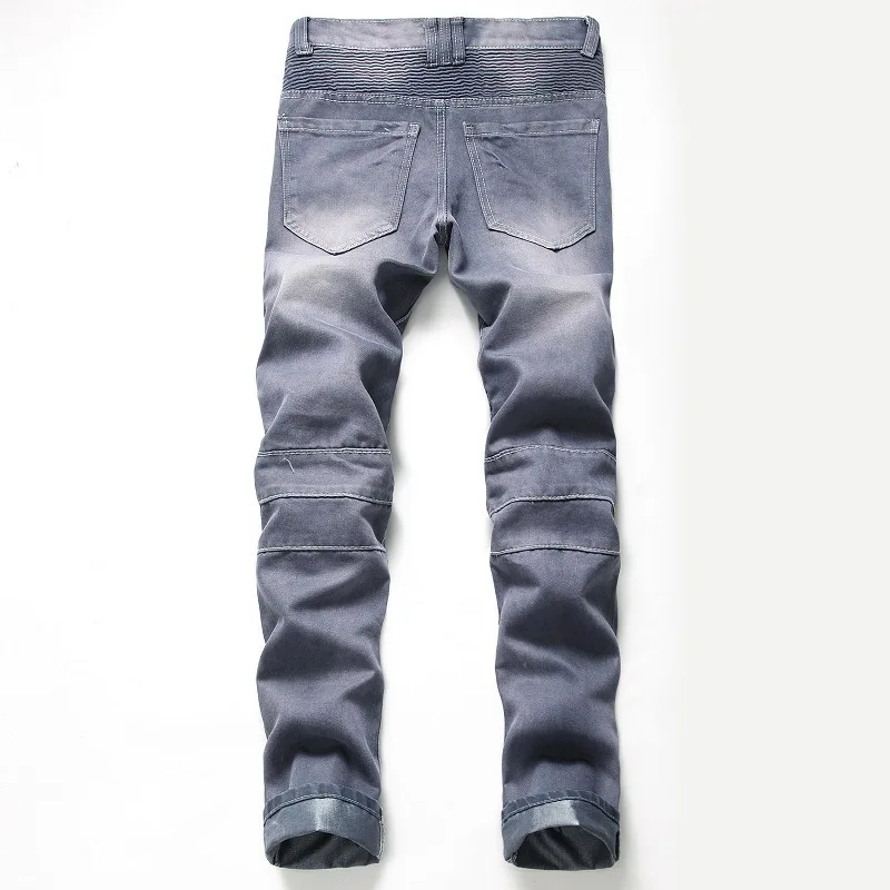 Ностальгические рваные мотоциклетные джинсы мужские прямые штаны ев...