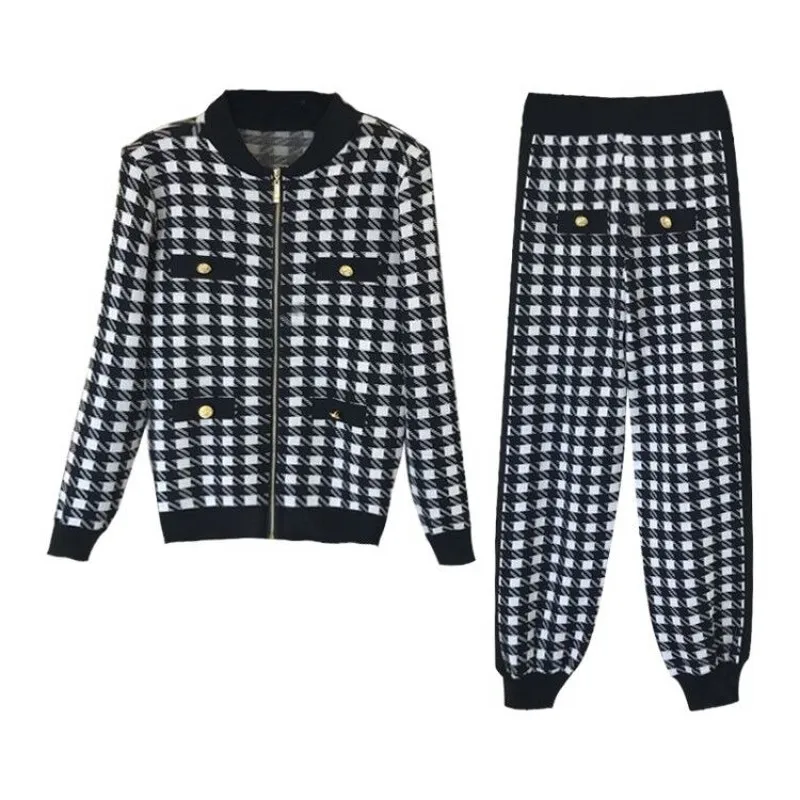 Женский Повседневный свитер на молнии и трикотажные брюки